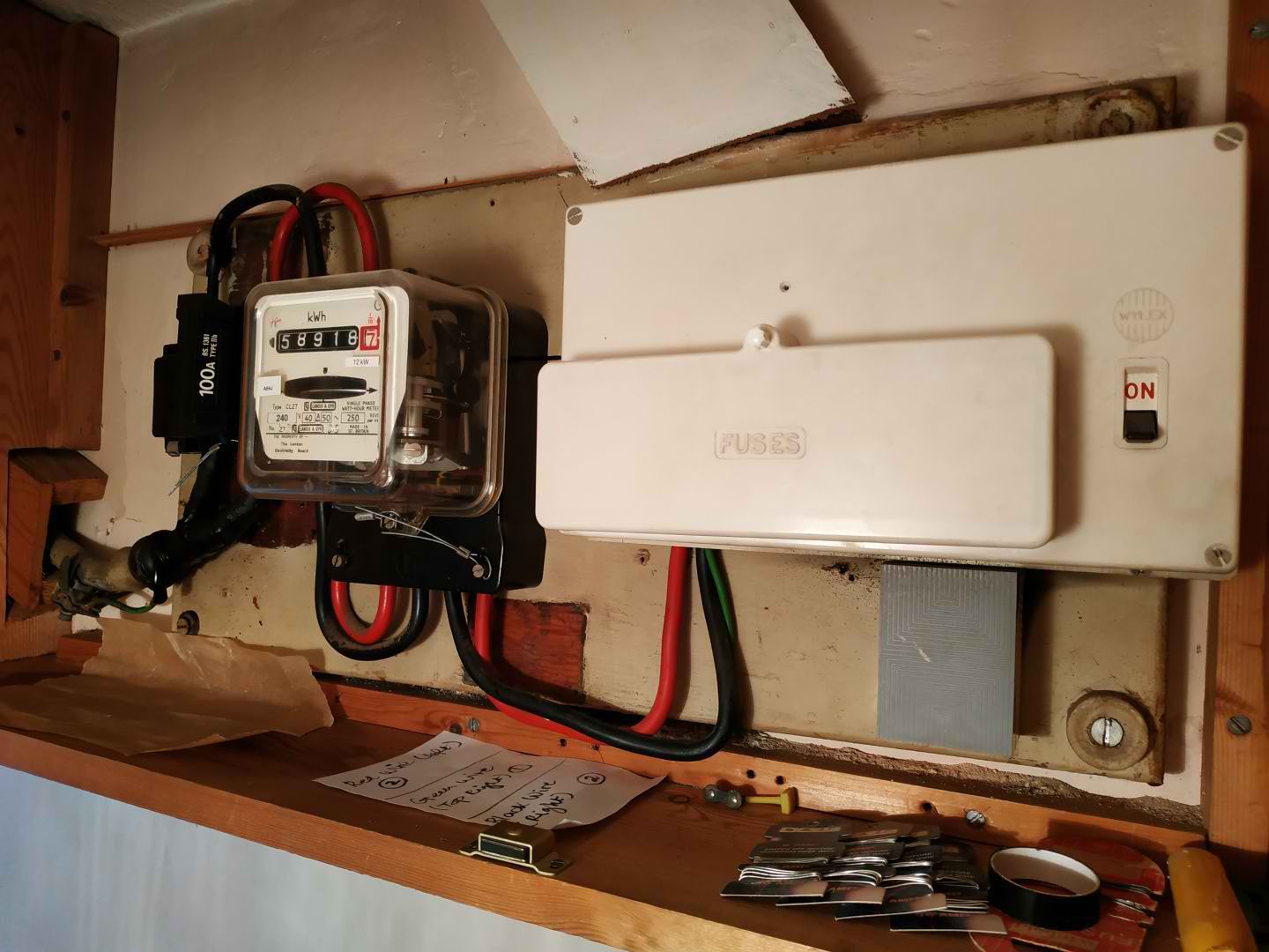 I've no idea how long it's been like this except that there has been a slight smell of what I can most closely describe as warm plastic (and possibly old wood) in the corridor where the electrical unit hangs on the wall for a few months, though still not sure if it's the fuse/meter box or summat else.