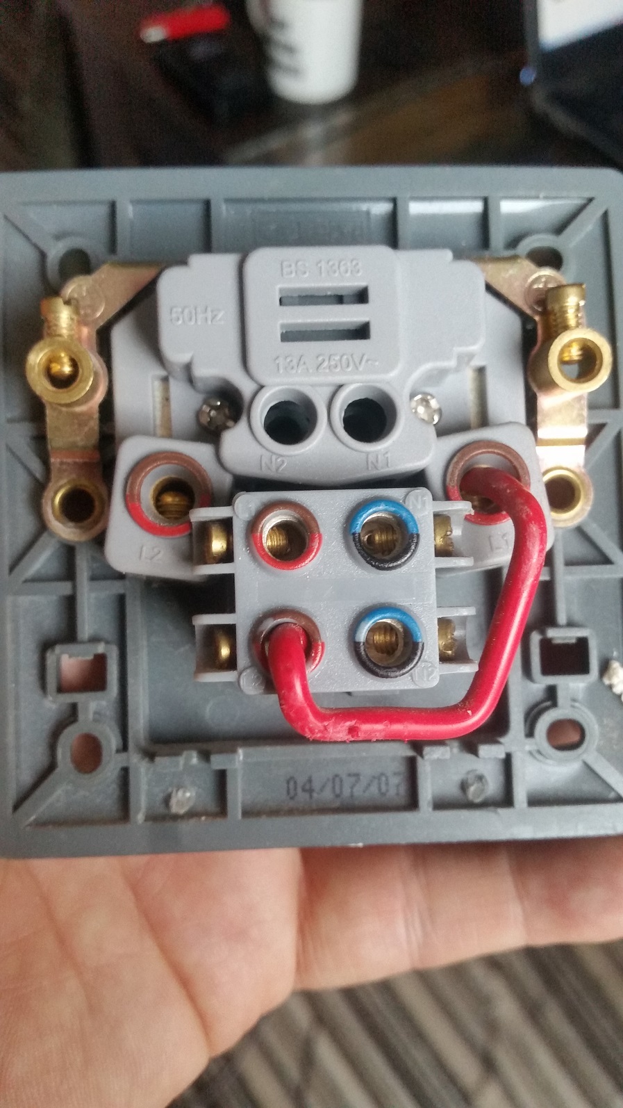 I need a little bit of help. Today I removed the faceplate of a fused switch as it has always bugged me that it wasn't quite flush, thought i'll take it off, repack the wires behind and it'll sit flush. As I took the plate off, the wires popped out of the back and I didn't even apply any force to pulling it from the wall.
