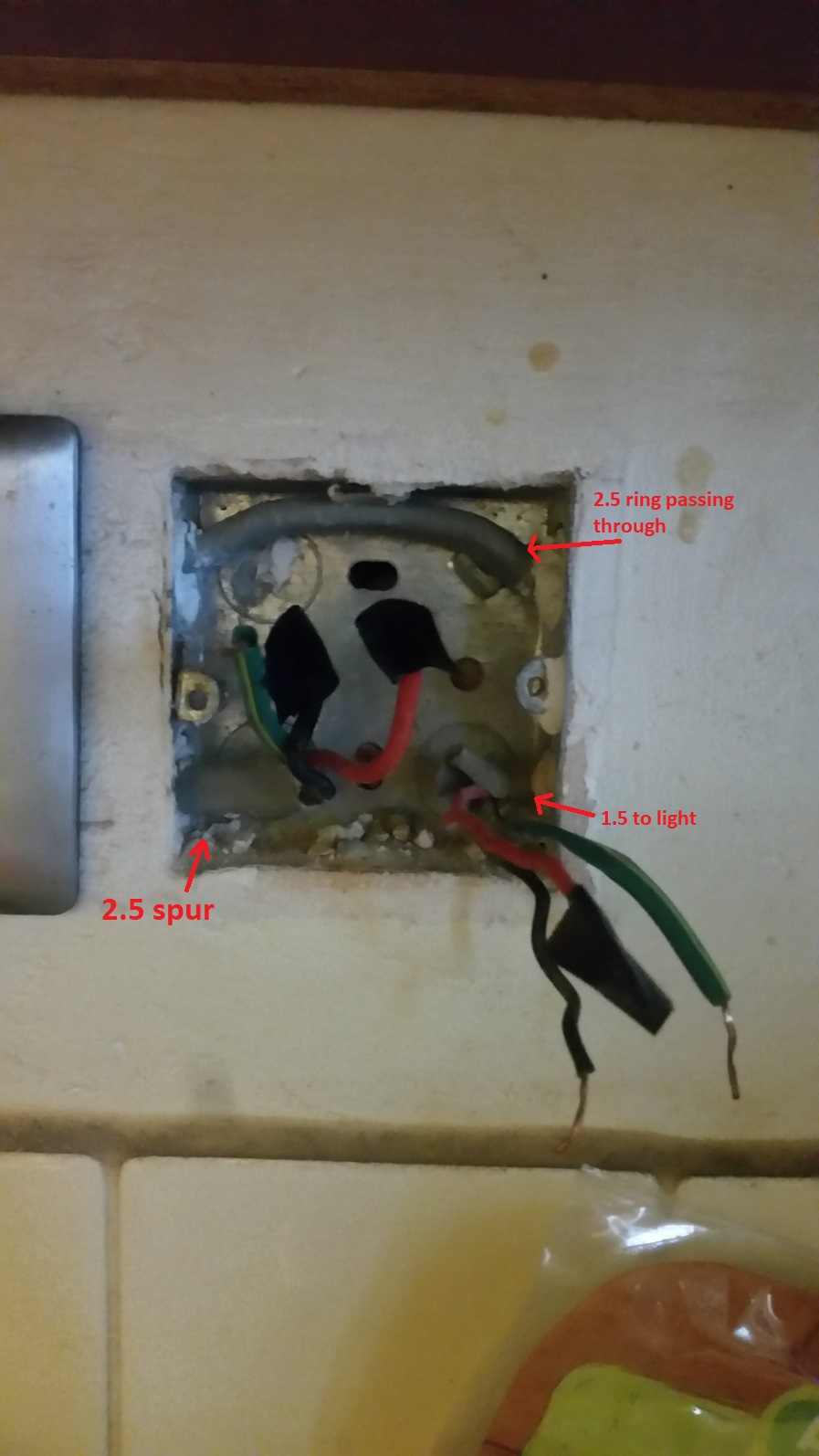 The fused switch is a spur from a socket to a light in the kitchen. It has a 13amp fuse in it (firstly should this be a lower rated fuse?).