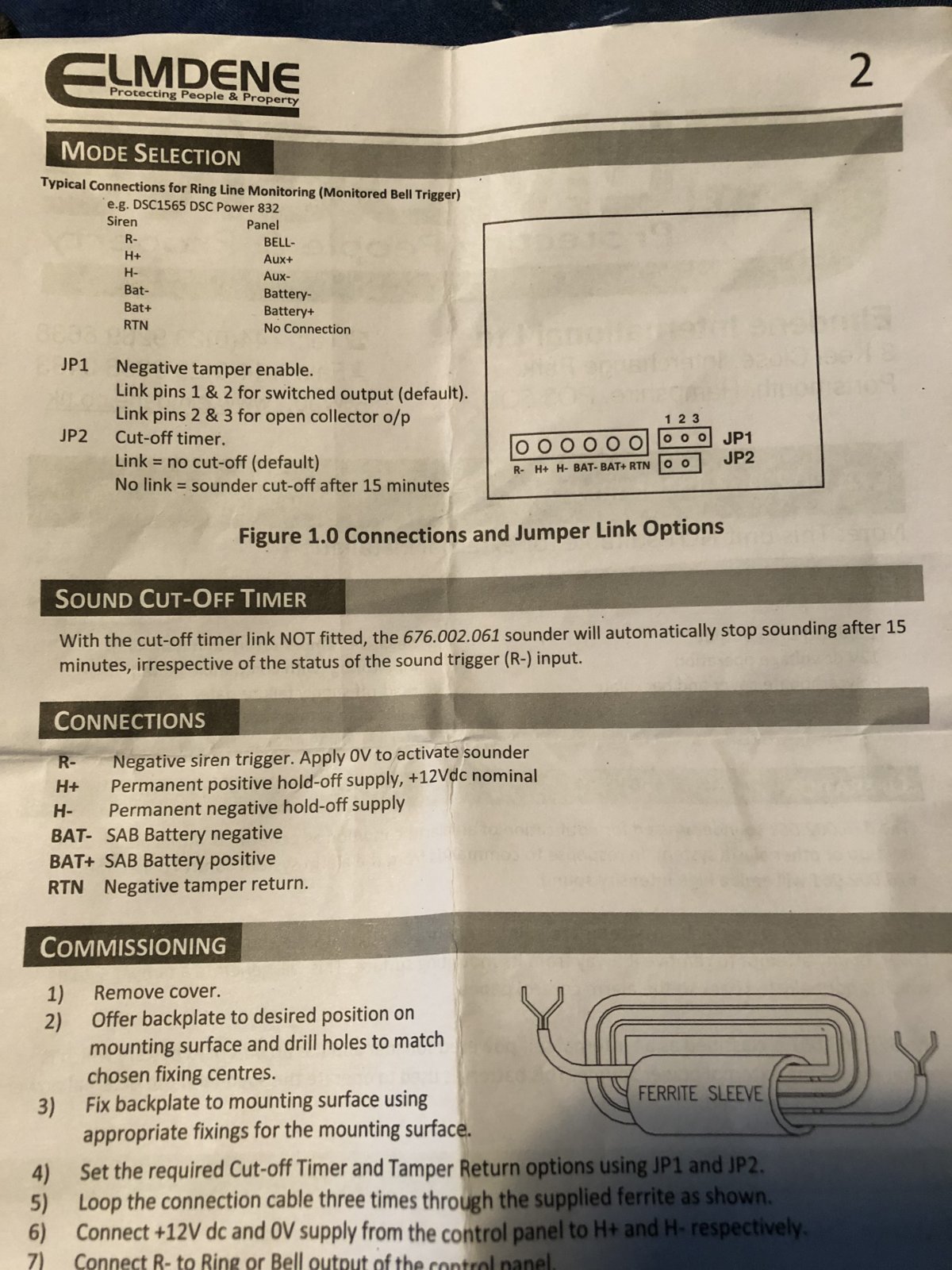 Lastly I needed to wire the internal sounder (i've decided I don't require ta bell box at the moment). Whilst installing the internal sounder I seem to have created a fault: Bell Fuse, which I can't clear through panel reset.