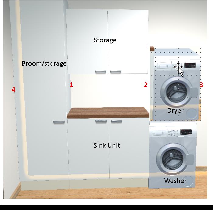 It will contain Larder cabinet, sink base with wall cabinet above and then a "DIY" cabinet made of end panels and doors
