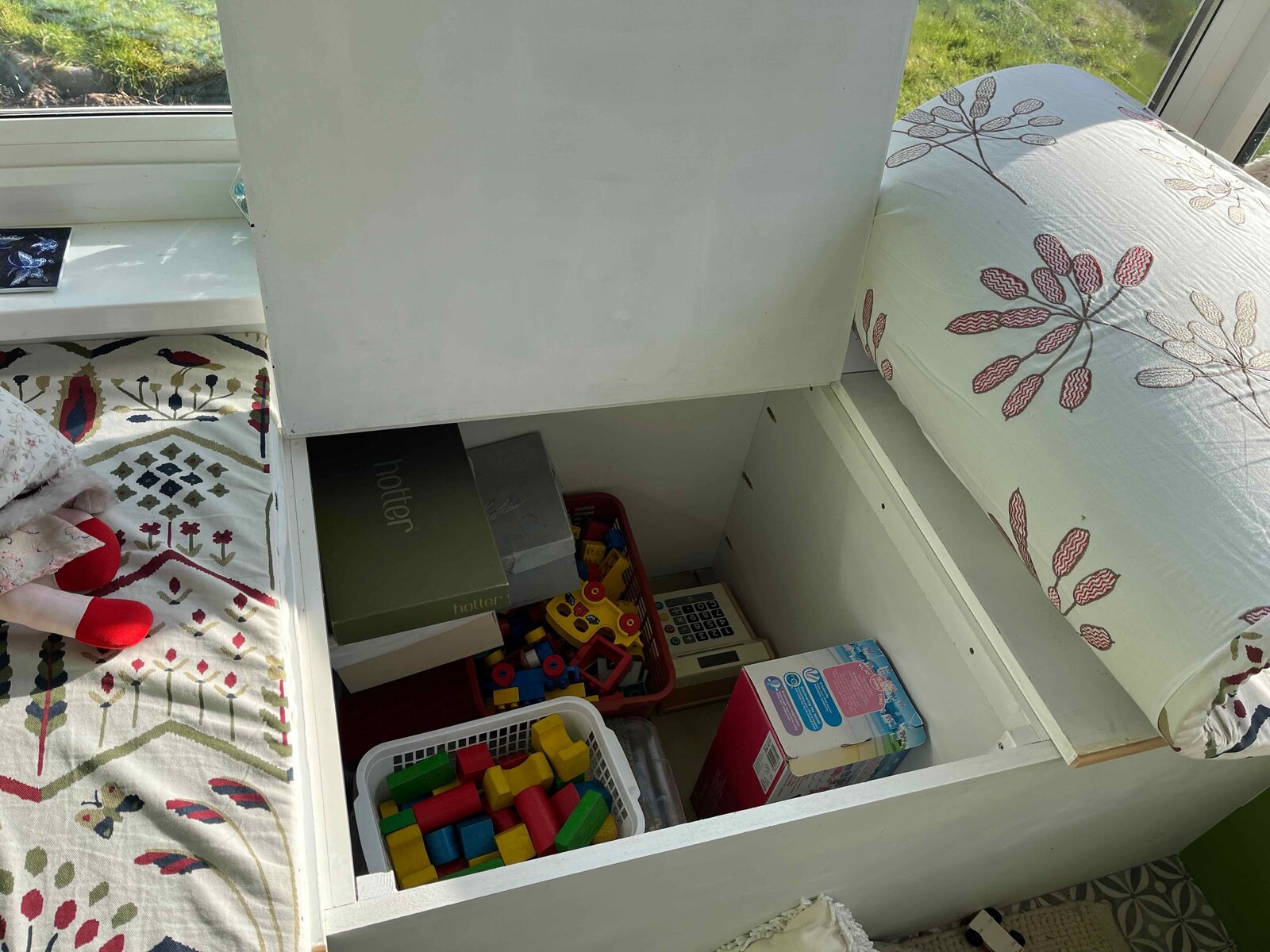So this looks great. Nice job. Yes I’ll be making the cushion cover for mine as well, so the top will be covered too.Much the same framing as mine! Yes, just screwed into the MDF; the lid is fully supported so the hinge isn't taking any load. I also skipped the stays, sometimes it's annoying mostly it's fine. I also didn't have to be too 'pretty' about the top as I had a seat cushion made to cover it all.