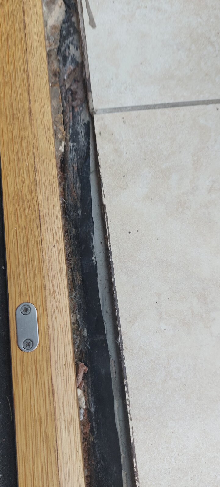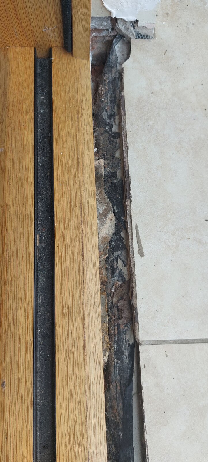 The DPM from the conservatory slab you can see coming up, and there's a DPC under the oak doors (as there was with the old patio door).