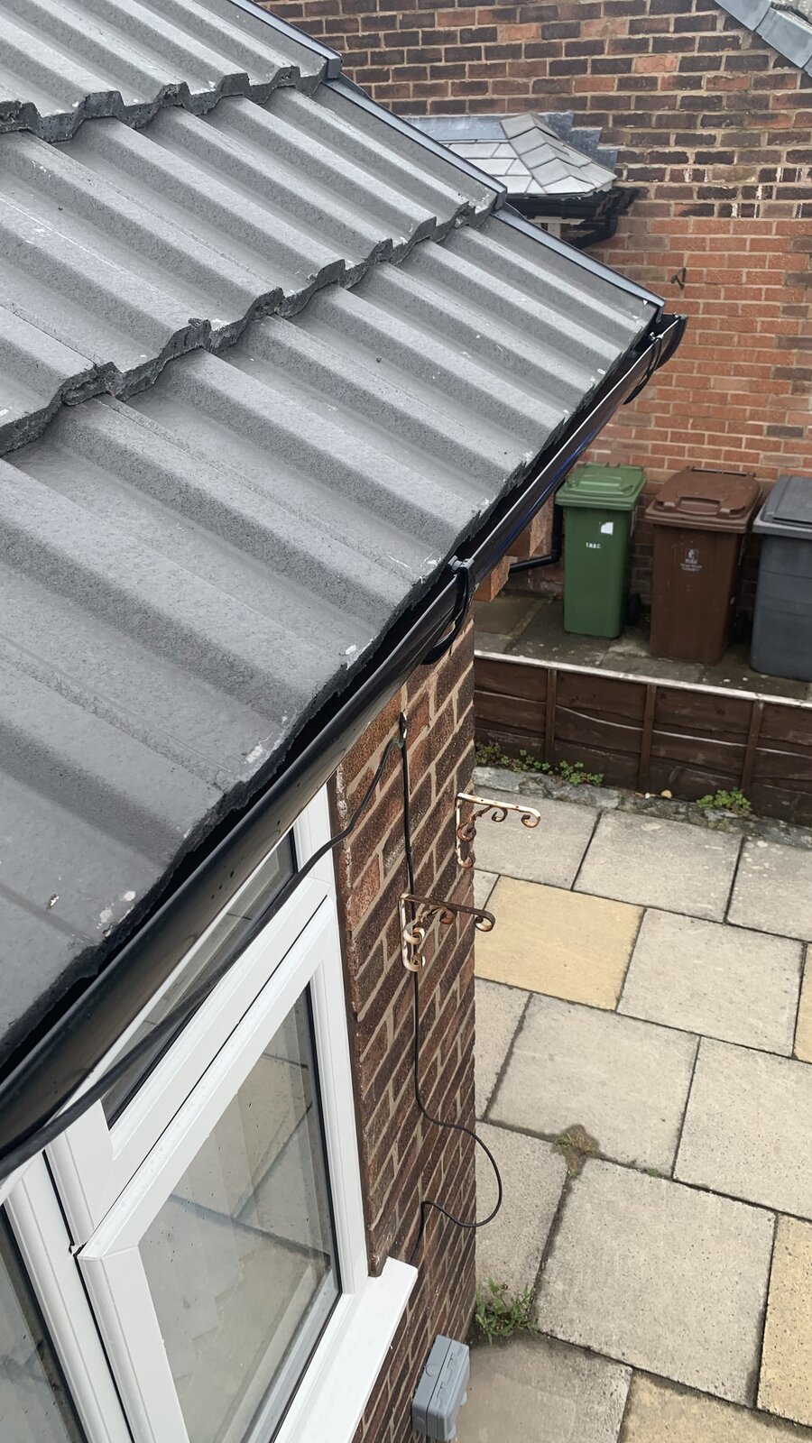 On my last reroof the roofer did not use the right gap for the gutters and are quite close to the tiles so there is no space for a hedgehog.