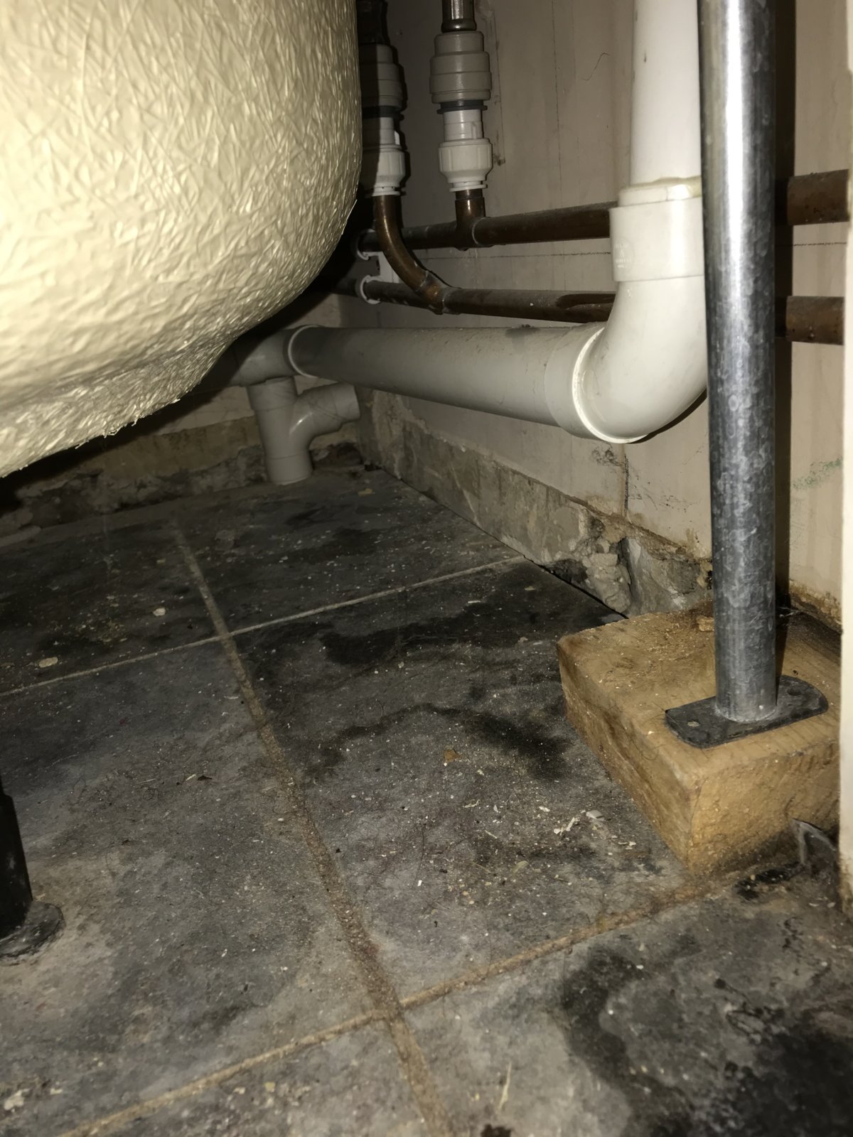 I’ve got a wall in my kitchen that has been experiencing signs of damp for a while at the top (see pictured). Directly above this is the bath. I’ve removed the front panel and discovered a gap between the floor tiles and the wall. The wall itself is also bare and exposed!