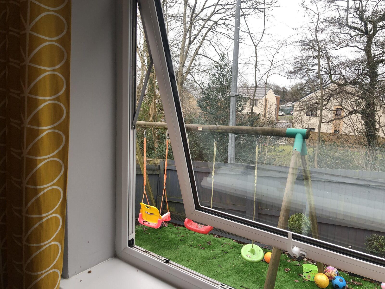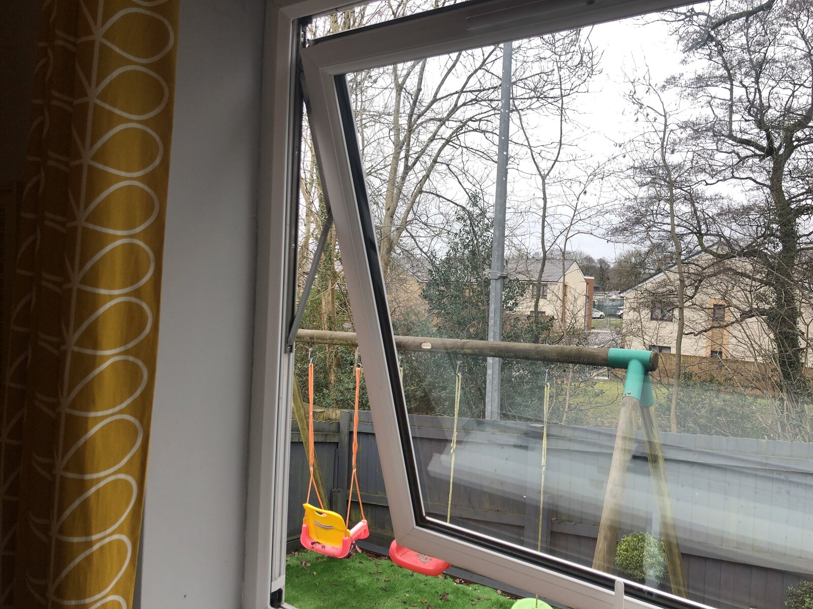 I've taken a pic with the window open so you can see the opening type/ hinges. Gap appears to be bigger on left side to middle.