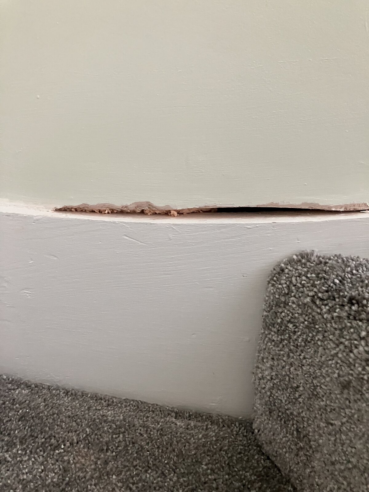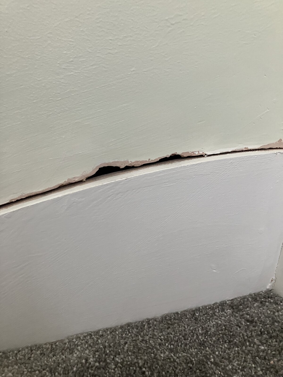 Hi, have got pieces of plaster falling out and gaps where wall adjoins staircase - annoying less than a year after building work was completed.