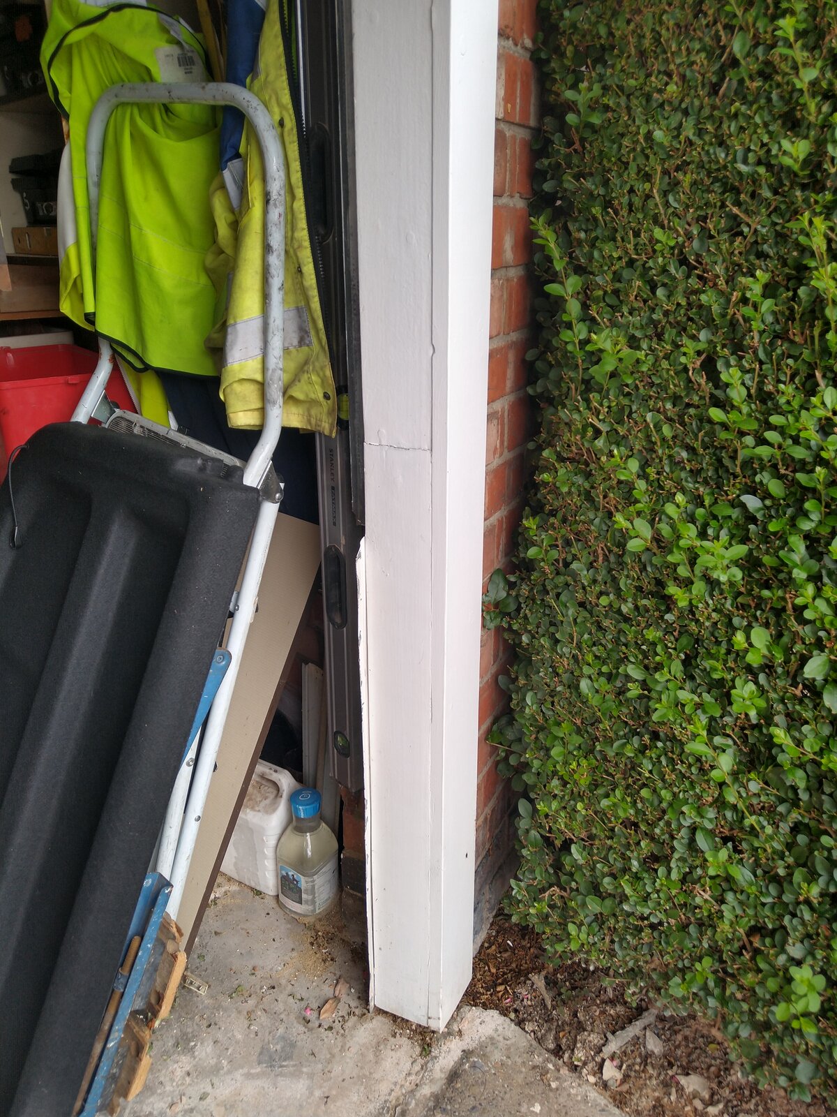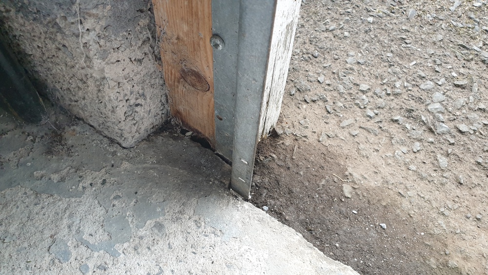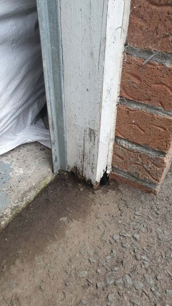 Could anyone advise me on the best way to tackle a rotting garage door post? Unfortunately water running down my driveway gathers easily at this point as it is a low area. I've no idea how best to tackle this as the small area would need protecting from both rain and surface run off water. Any suggestions appreciated.