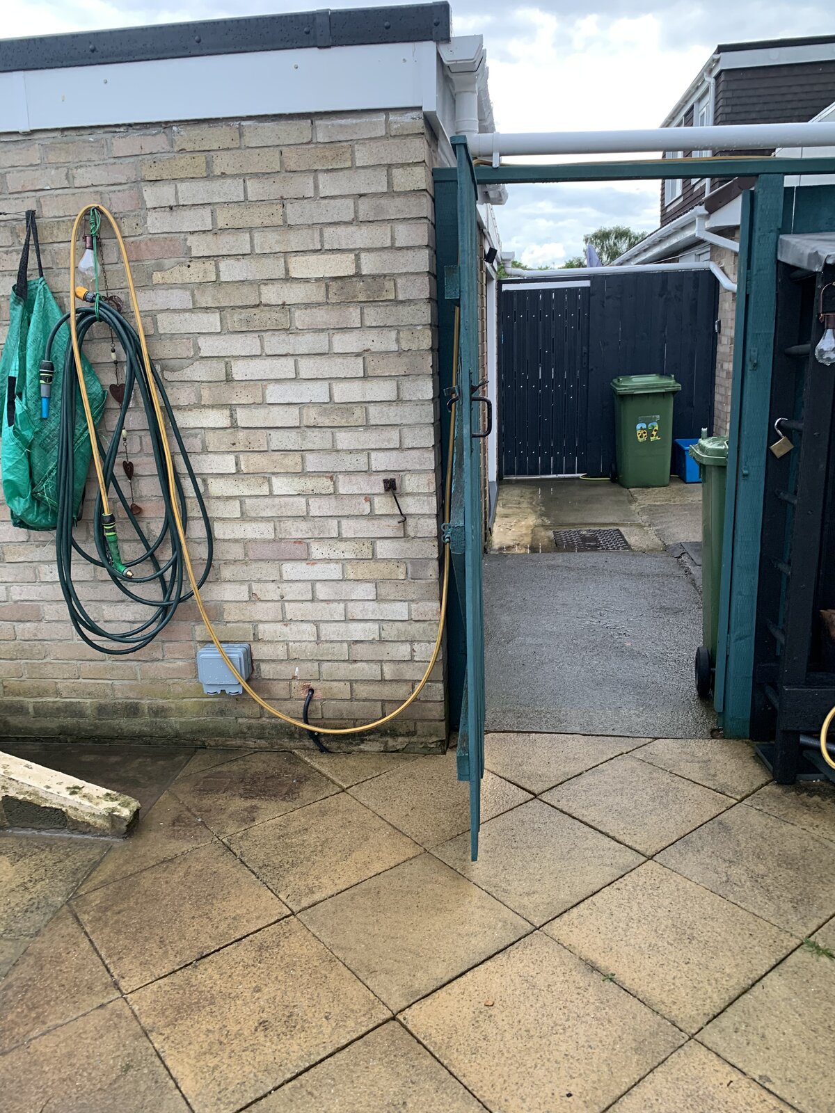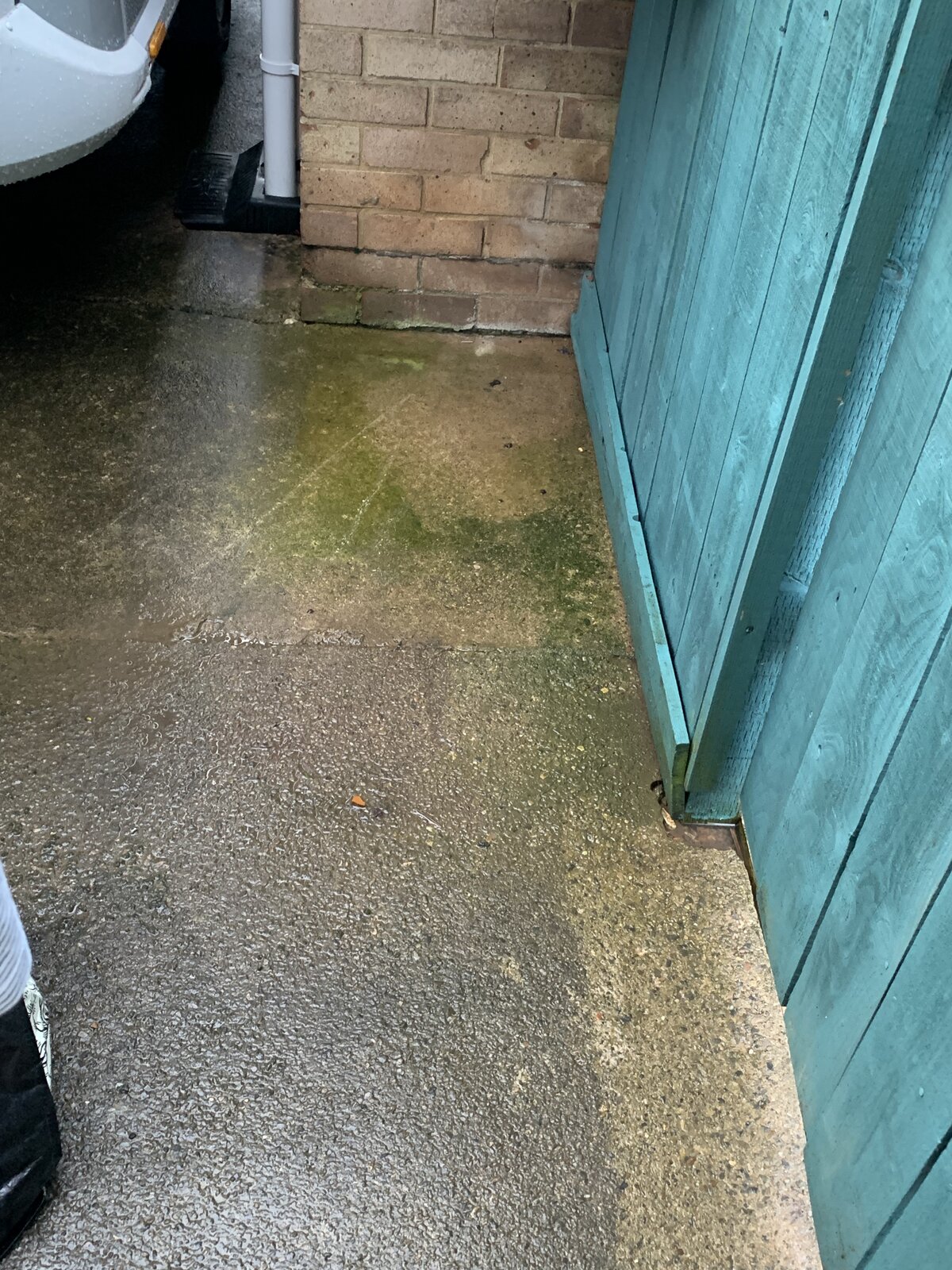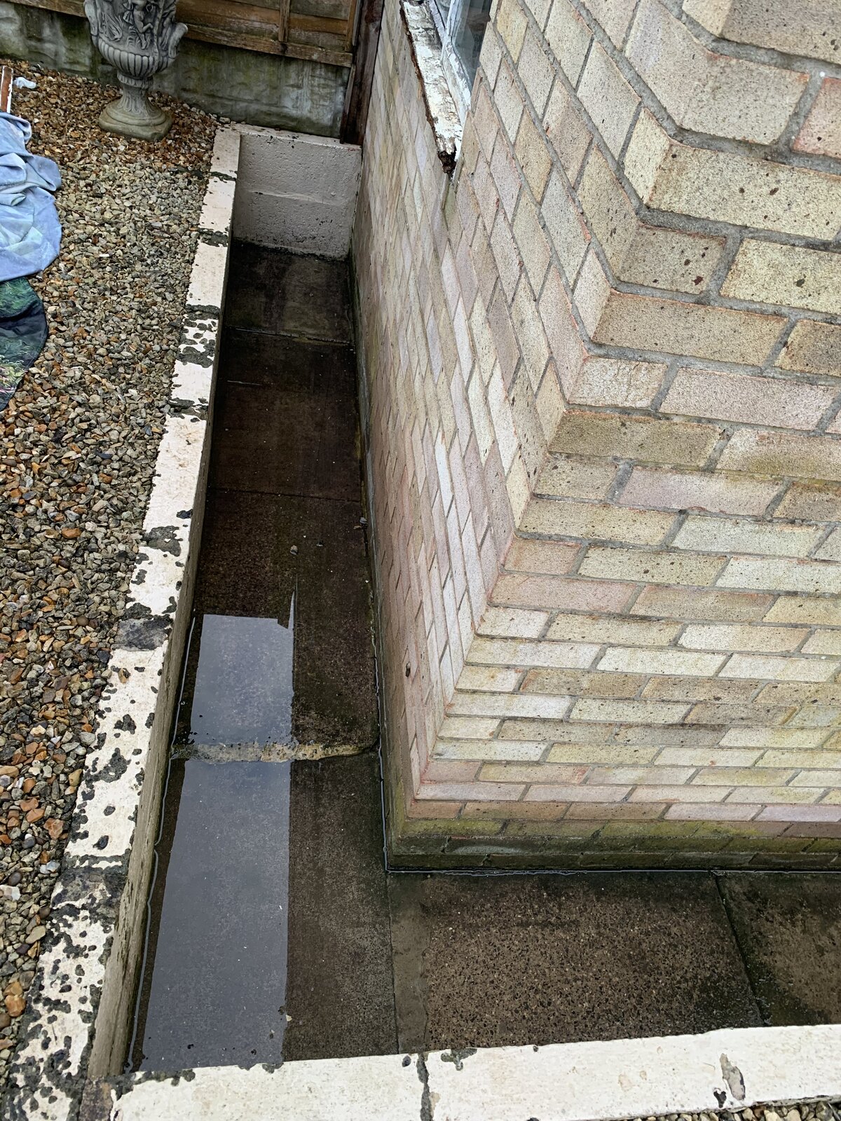 Currently planning to try and break slabs a little to dig down and fill with gravel (clay is under here) & stick membrane on external garage wall and back fill trench with gravel and then mud.