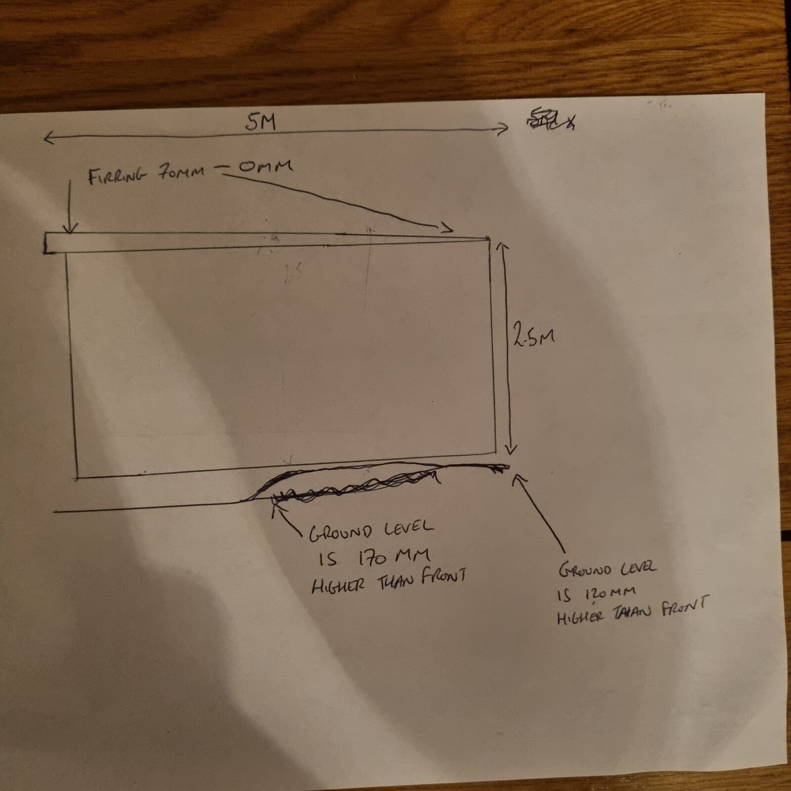 My garden is on a slope. The back of the proposed build being 120mm higher than the front and it actually goes up to 170mm in the middle before dropping down to the front. My question is, if I take the height from the back of the build, can I run a firring front to back from 70mm down to zero and it not be included in the height. So the back of the build will be 2.5m and front 2.7 ish allowing for upstand.
