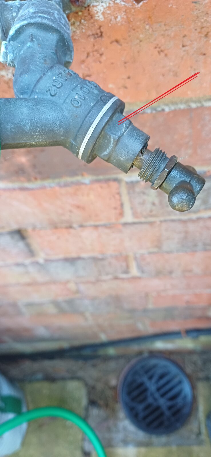 I've attached an image of a Garden Tap where the unscrewed nut will not screw back on. I don't know how it became undone (maybe the large handle unscrewed it) and I began to wonder if it was a left-hand thread but no amount of attempts to re-fit works. Could something be preventing forward movement or is it just a damaged thread?