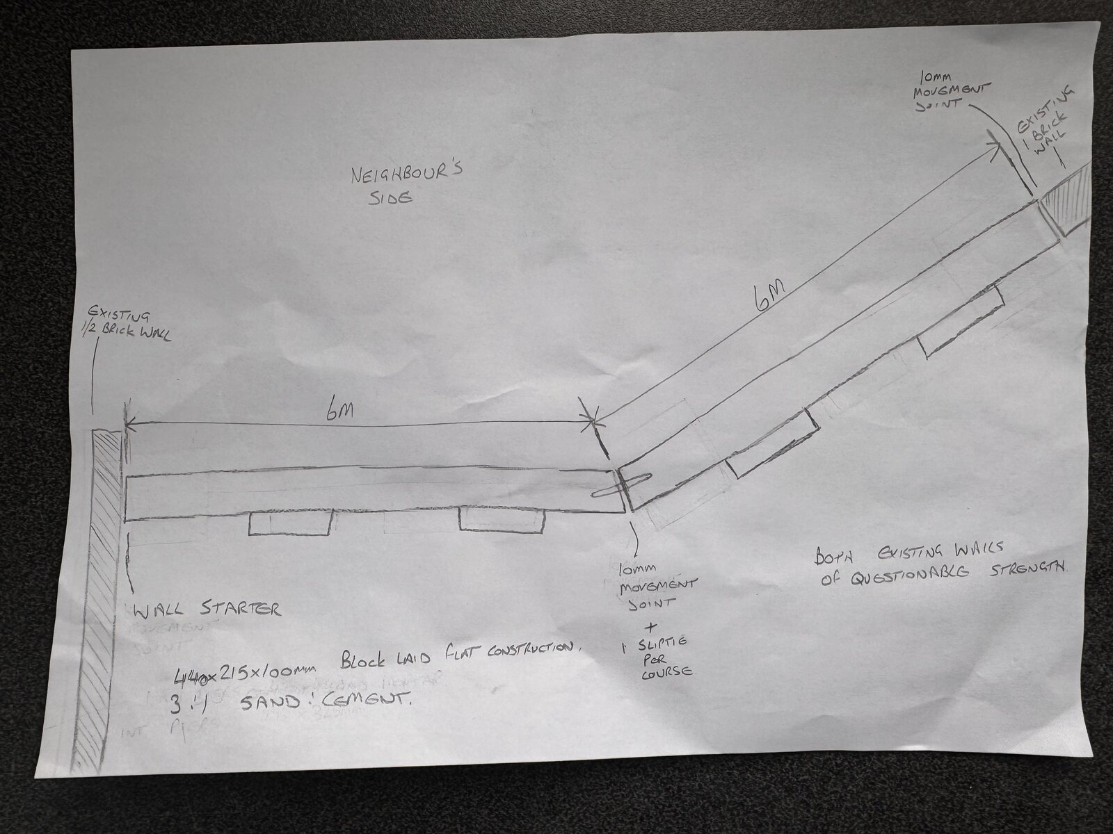The gardens are a bit of a weird layout, my neighbour 2 doors up built a single skin, 6ft block wall around his garden a few years ago, I’m surprised that’s still standing.