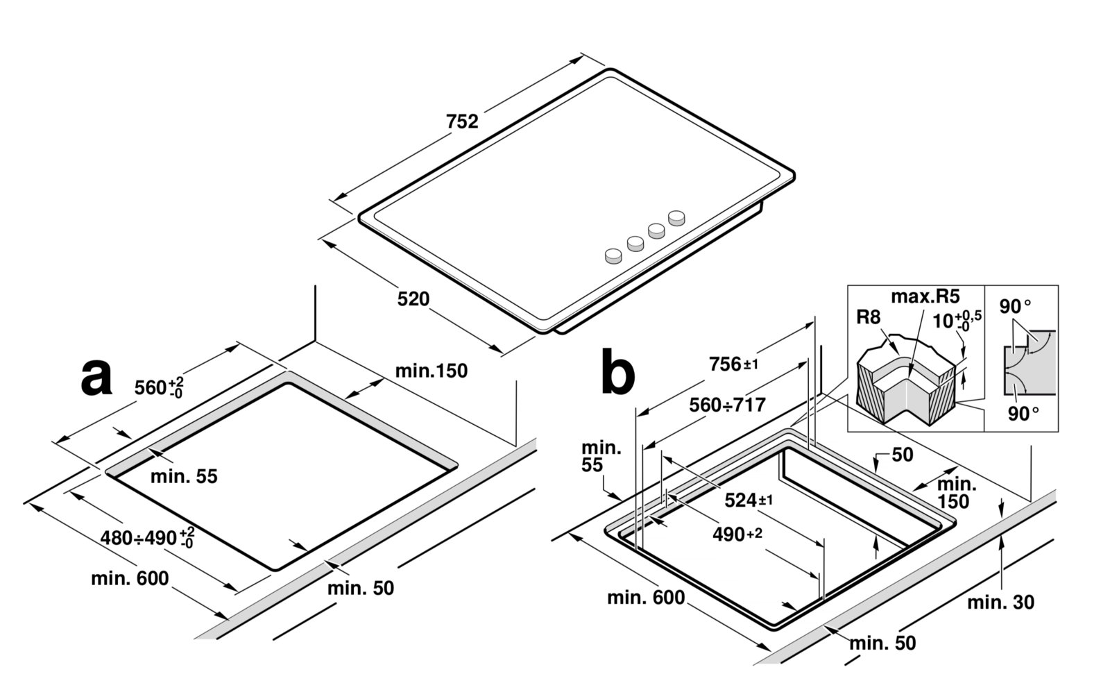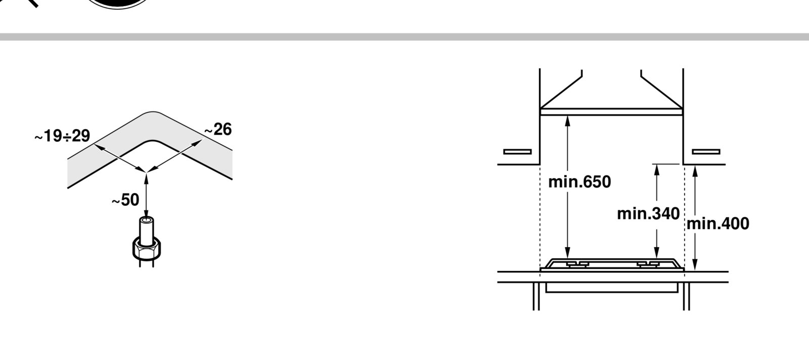 If there is something directly next to the hob like a cupboard is this also 50mm?