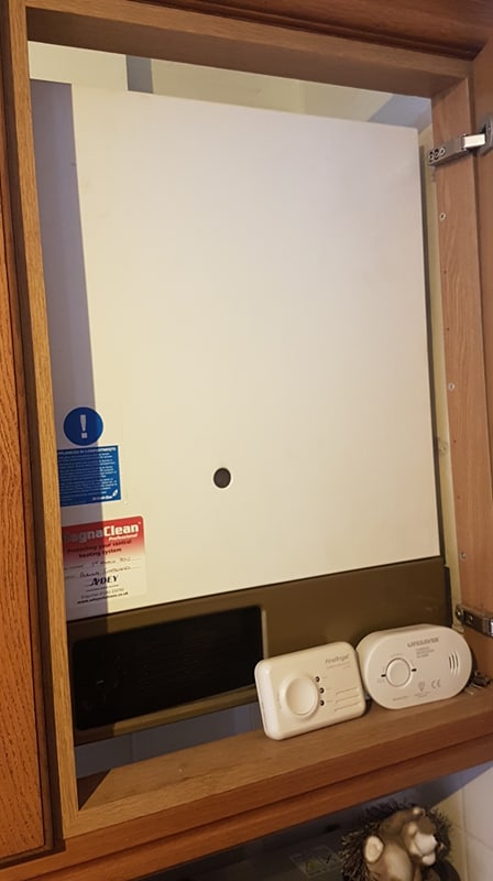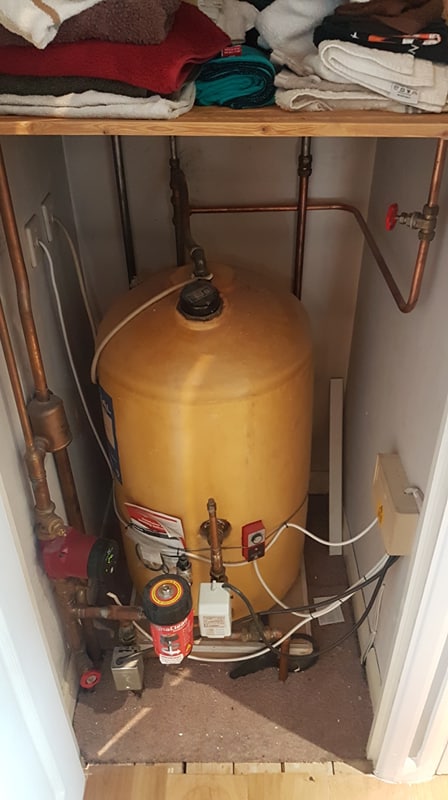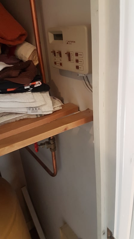 I've attached quite a few pictures. There is a button in the airing cupboard which you can see is turned on (on the left hand side). What does this do?