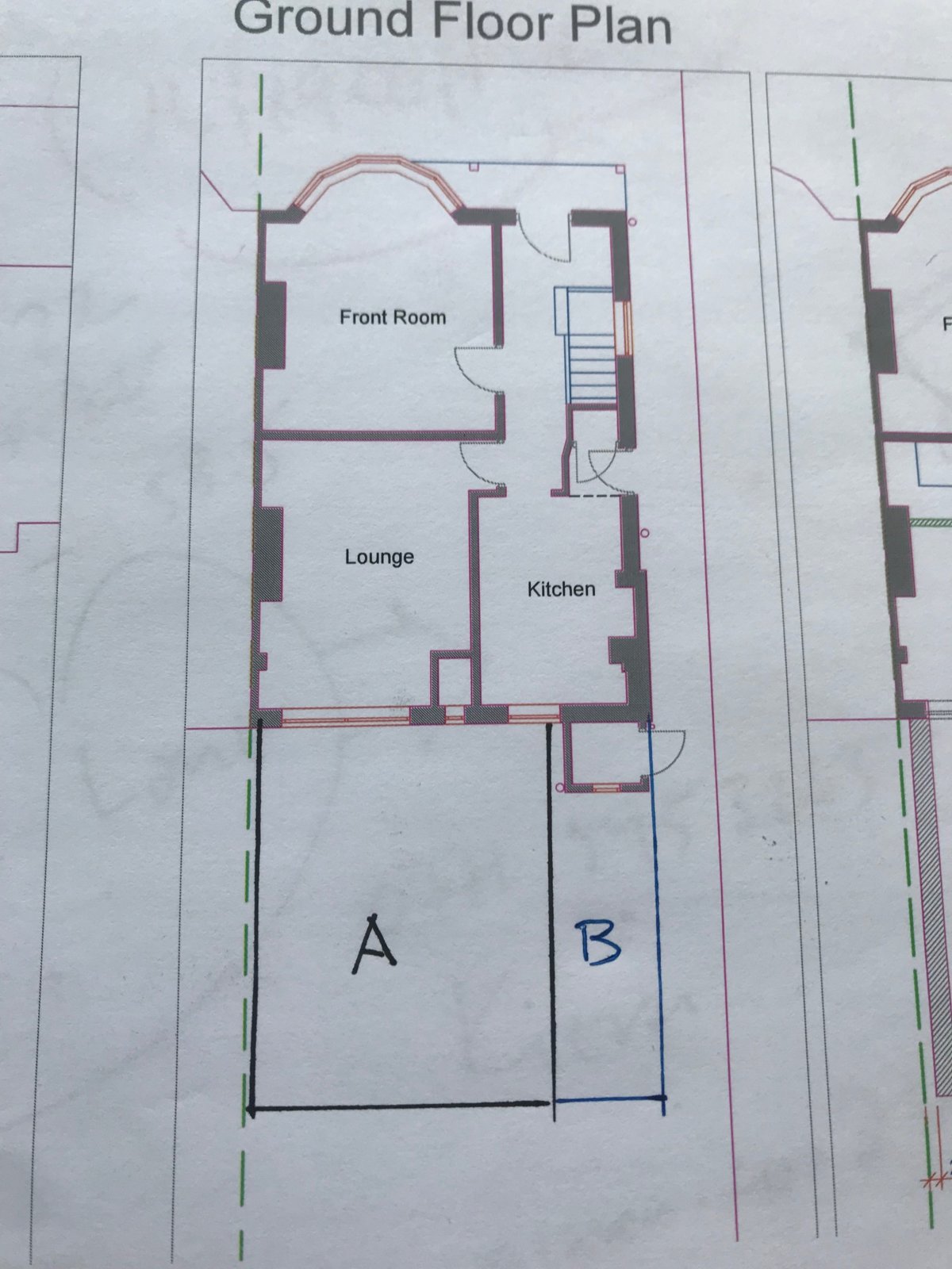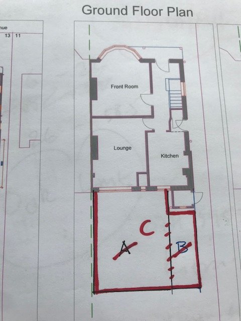 1. Building Extension A, marked below under PD, and then trying to apply for regular planning permission to infill Extension B.