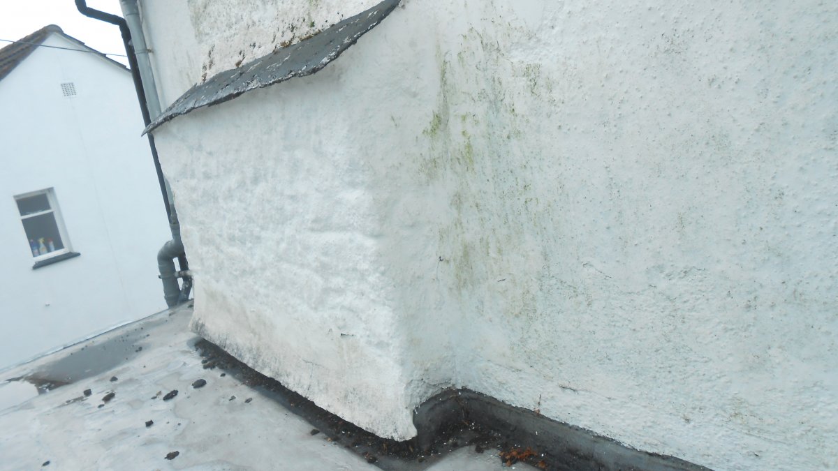-single storey flat roof behind chimney