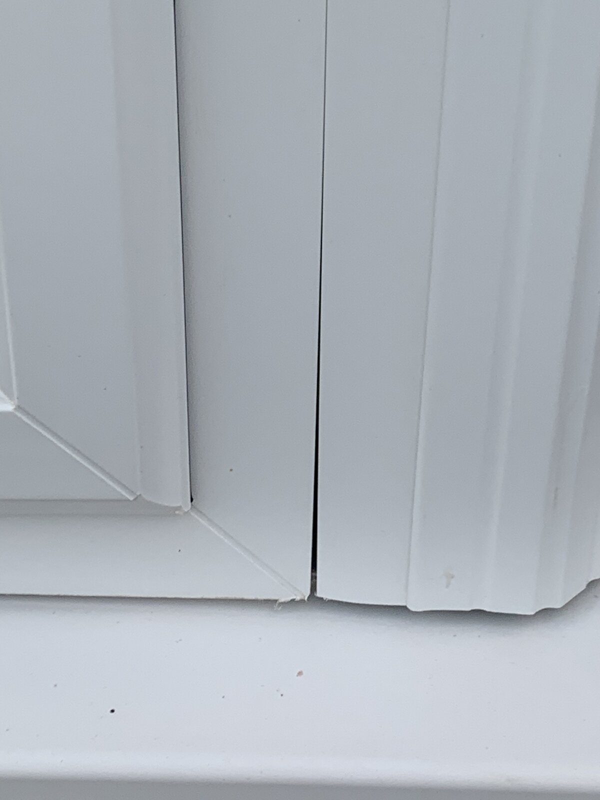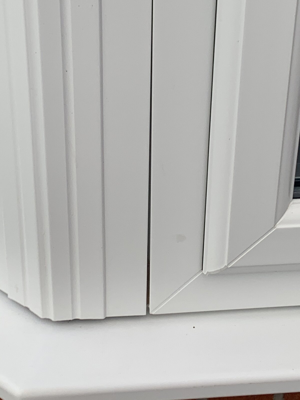 It can happen, its probably due to a small ridge on the very corner of the frame ( from when it was welded together ) pushing the post away , normally you'd line it up first and check and gently remove said ridge before screwing it all together but sometimes it gets missed. hopefully there is silicone between the post and the frame when it was all connected together , but you could just fill that gap with some white silicone , or if so inclined get a 20mm white edgeing fillet trim and cover the entire join for peace of mind