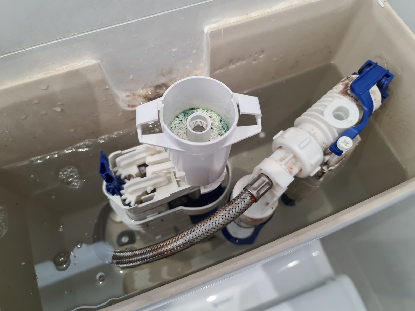 I have a Gerberit Dual Flush (see image attached) which is running very slightly into the pan at all times. I have changed the bottom silicon washer for a new one, but it continues to run slightly. Is there anything I can check, perhaps on the siphon?