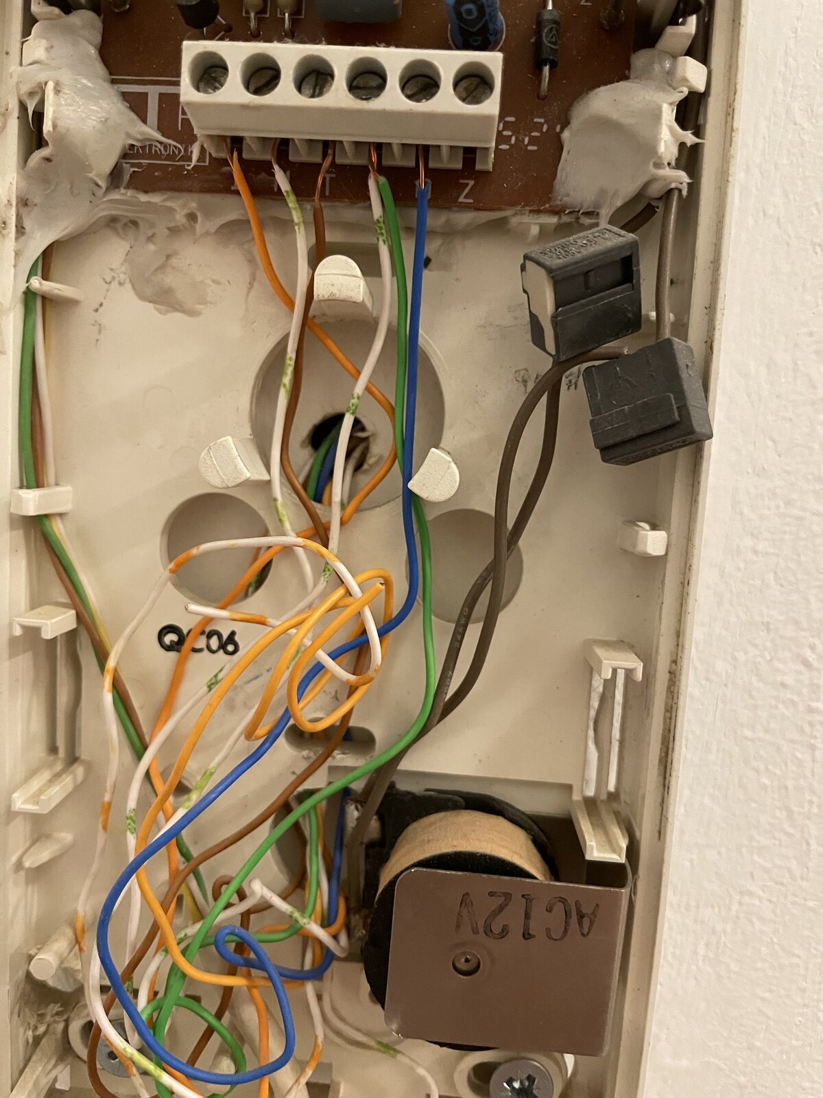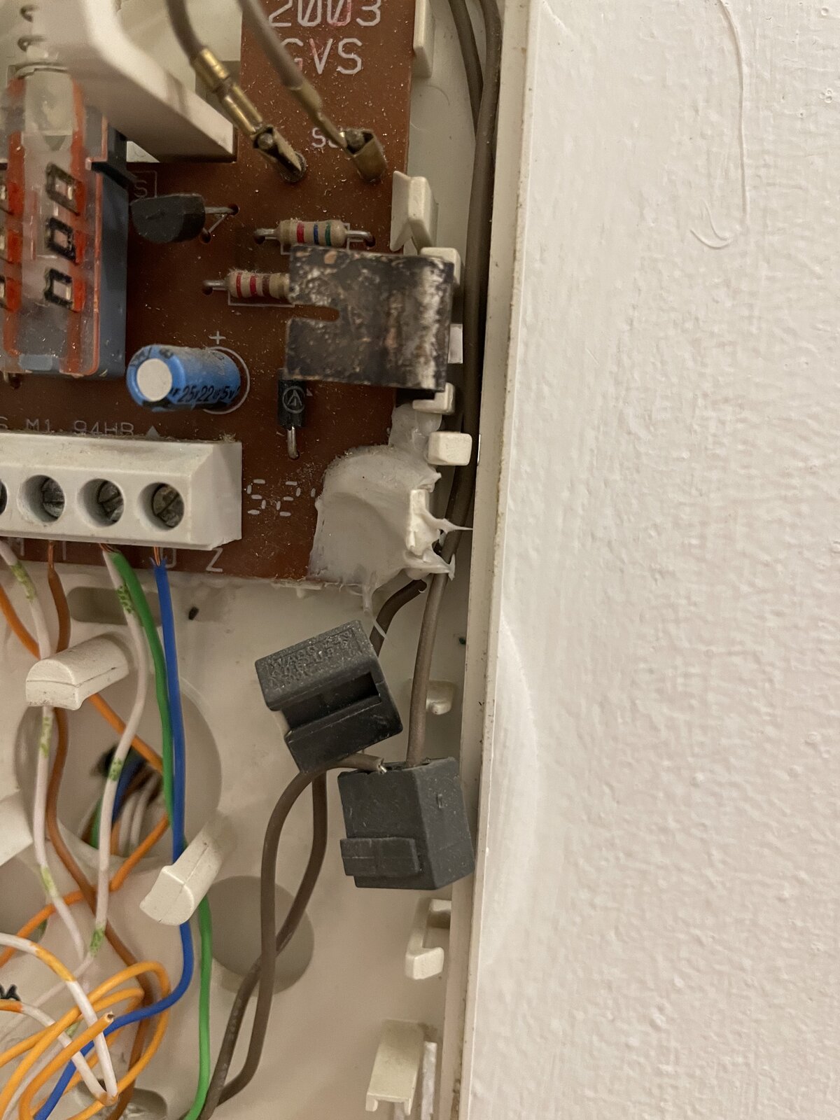 I think the buzzer is 2 of these 4 brown wires going into the grey blocks in the photo attached. I want to add a switch here. However I can’t get the brown wires out of the grey connector blocks! I can’t cut these wires as they are already very short as it is.