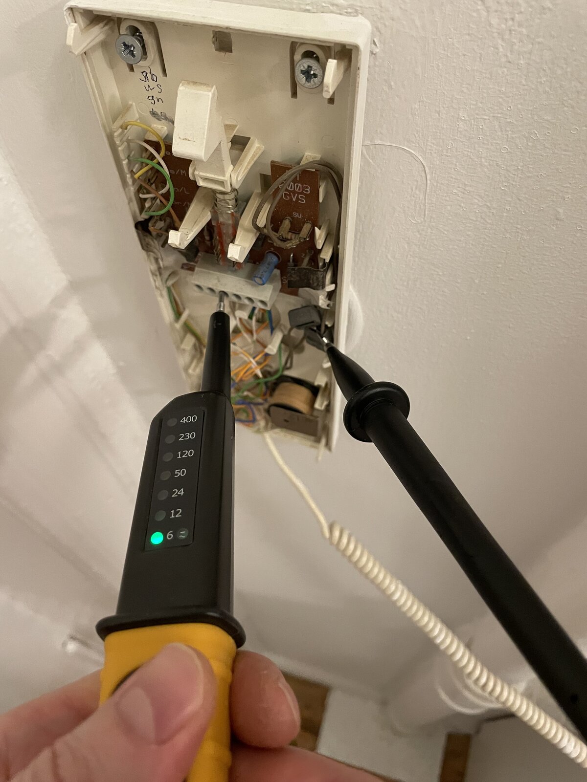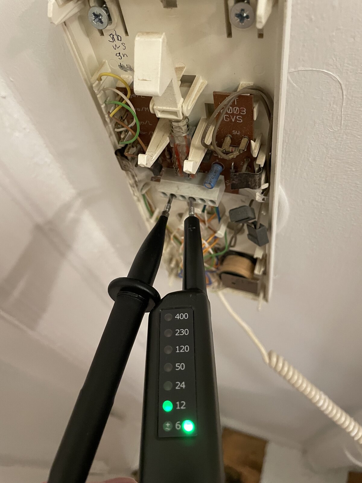 I can’t turn off the fuse but the voltage is showing as 6 or 12v with a voltage screwdriver tester tool, so it looks like I can work on these with the power on as it’s a weak voltage.