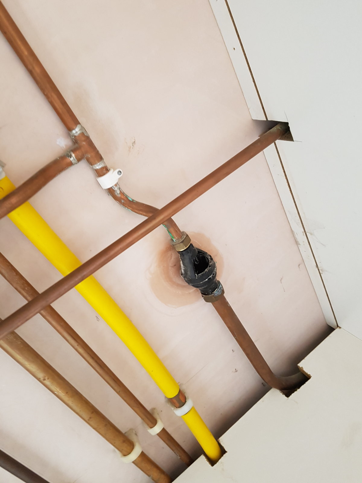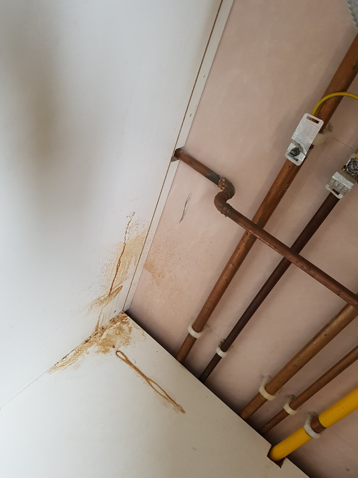 Clearing out the cupboard revealed some staining from what looks to be dirty brown water that has, at some stage come from the left of the boiler unit. I did not see any fresh liquid, just dried.