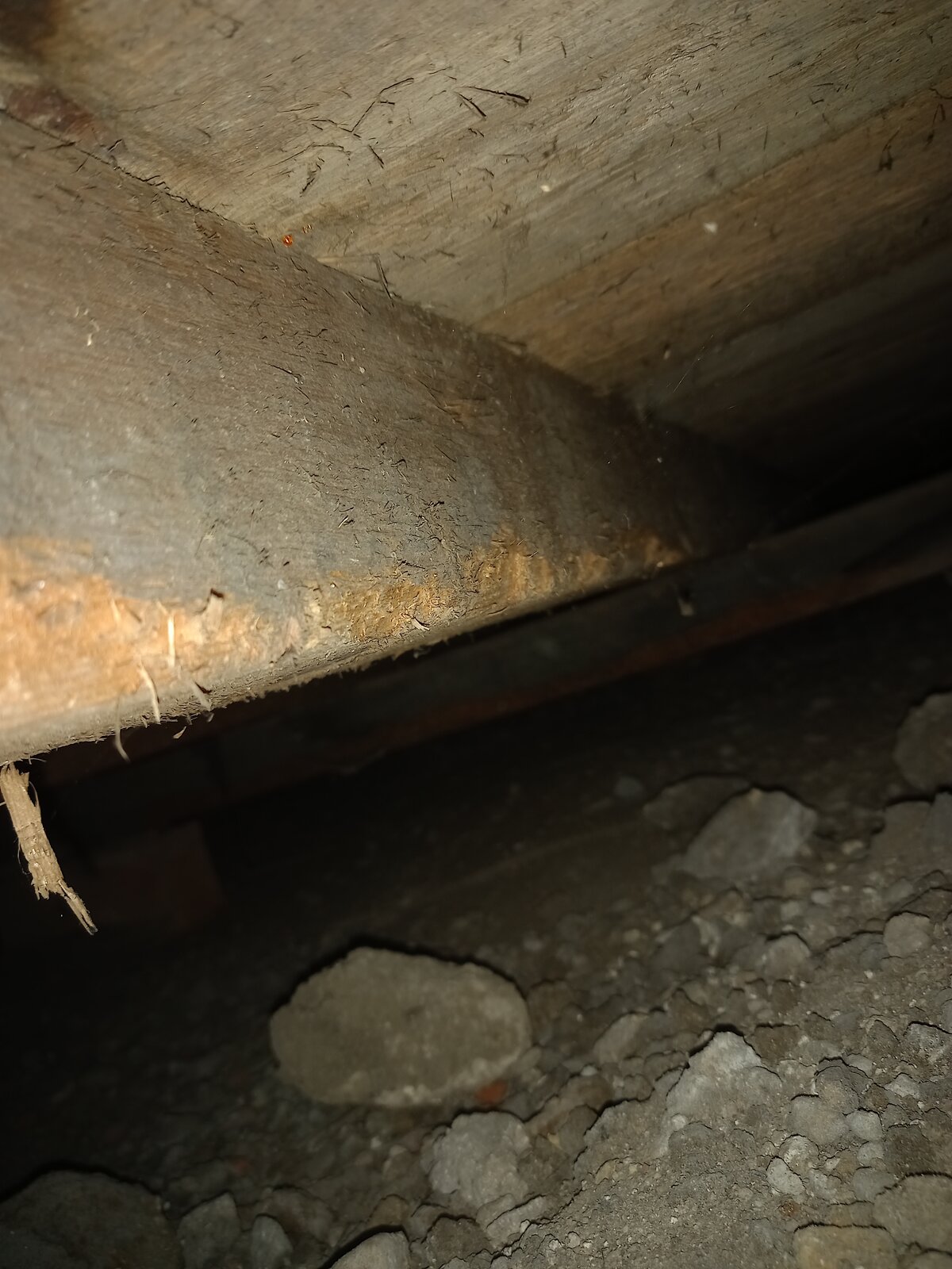 It is possible of course, having just bought the property, that the previous owner has simply scraped all along it to remove possible woodworm infestation etc. I have woodworm issues in other areas.