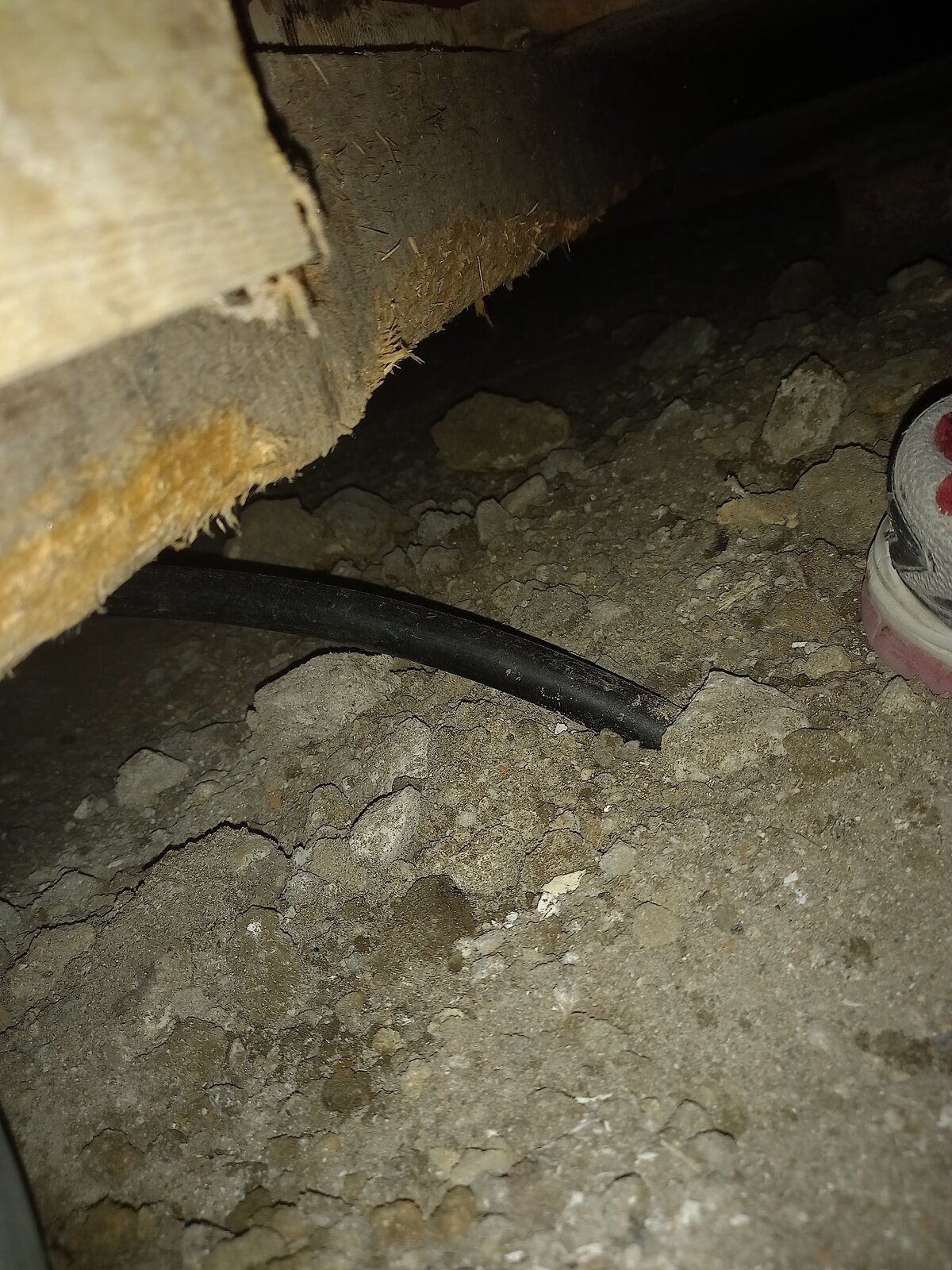 Any thoughts on what has caused this? It is all along the edges of the ground-floor joists. It looks fairly recent.