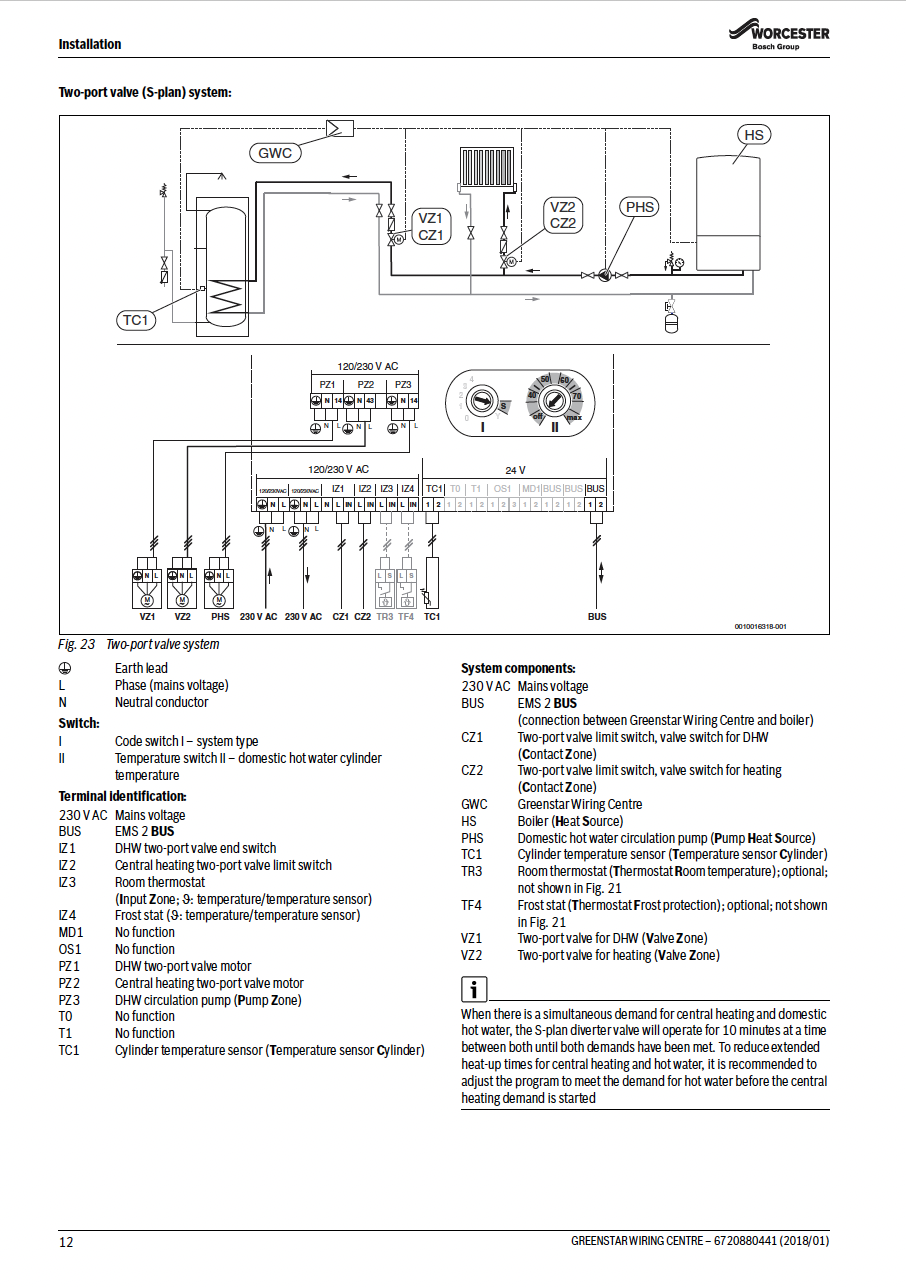 I have a Worcester Greenstar 27RI compact boiler downstairs which is connected to a Greenstar Wiring Centre upstairs next to the hot water cylinder. The wiring centre talks to the boiler on an eBus connection. About a month ago I connected a Tado stat to the wiring centre on IZ3 in the wiring centre as instructed by Worcester tech support. It's a simple relay setup, stat bridges IZ3 which calls boiler for heat. Everything has been working perfectly up to yesterday.