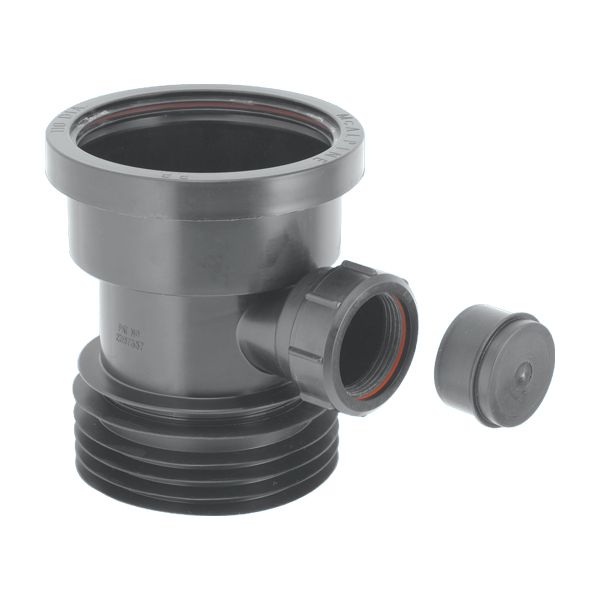 The soil pipe is cut at ground level, then there's a floplast drain connector and standard floplast soil branch.