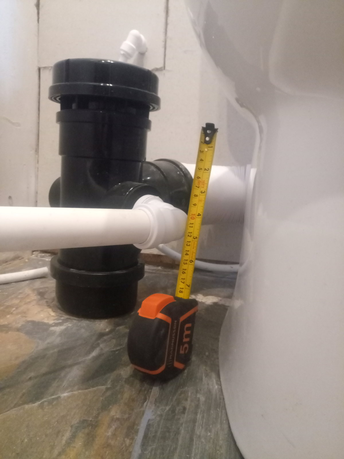 2 metres further away than the sink, and joining into the sink waste, there will be a shower tray.My problem is, as you can see from the pictures, the join from the sink is already high, and this will make the shower even higher. I can't move either the sink or the shower.