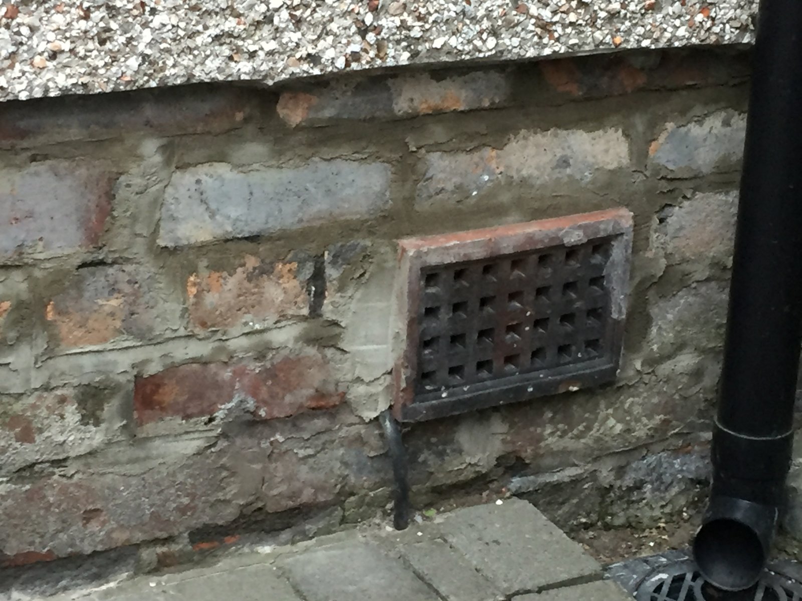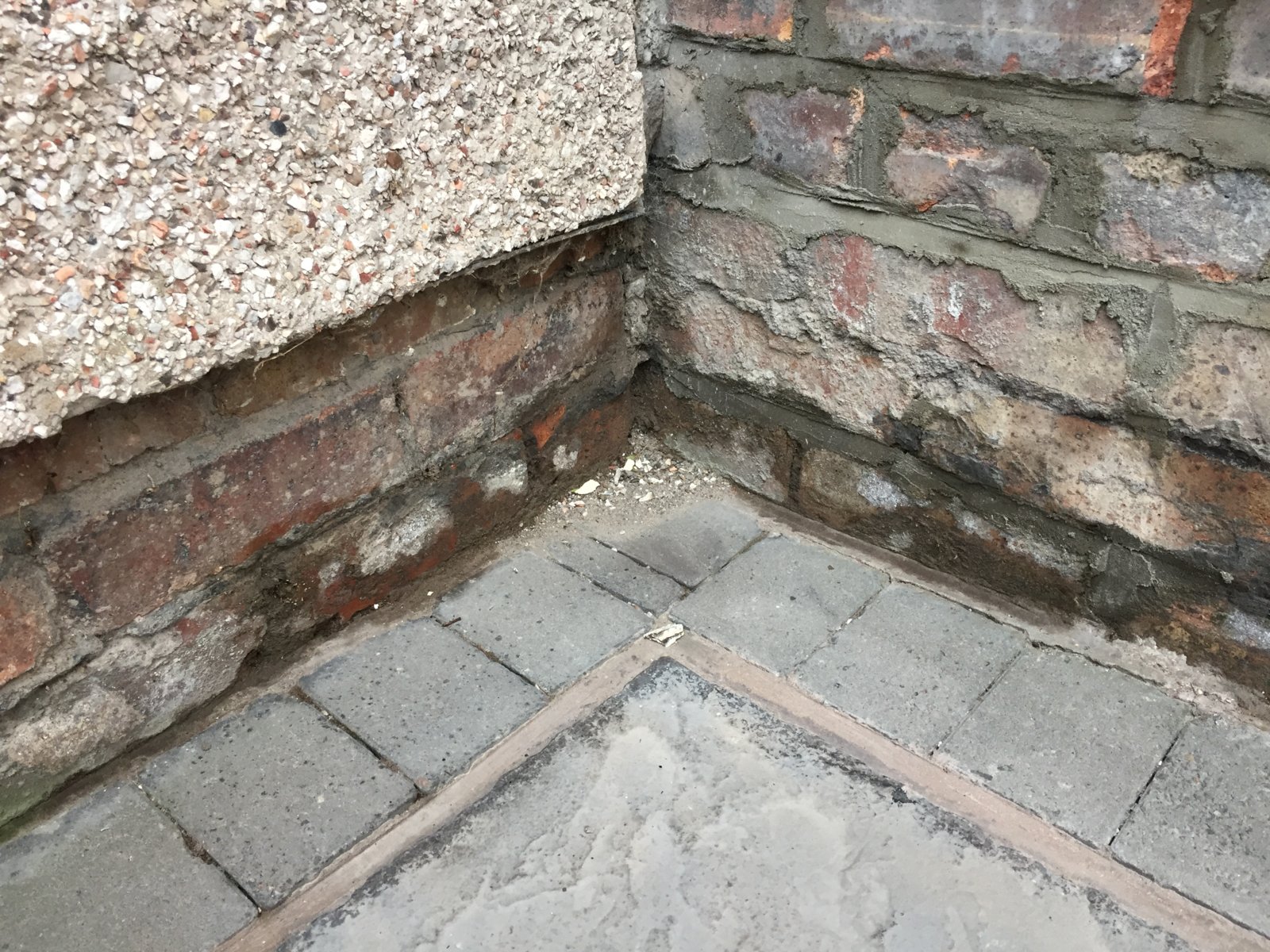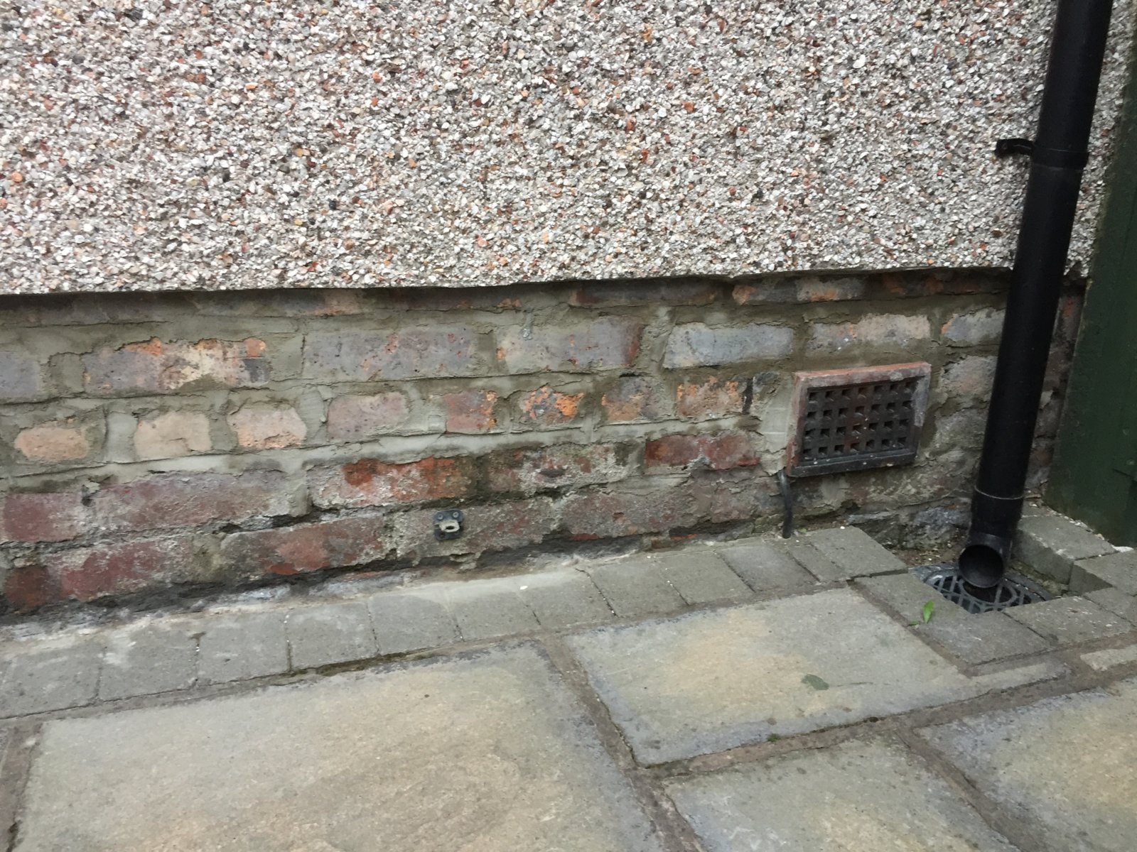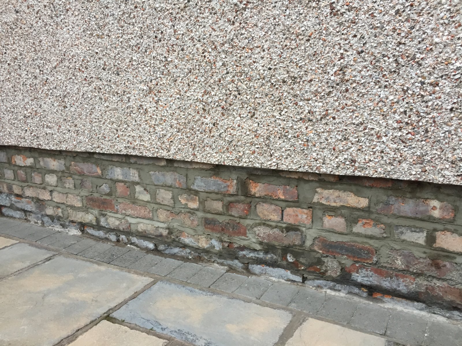 Ground level, pointing and signs of moisture