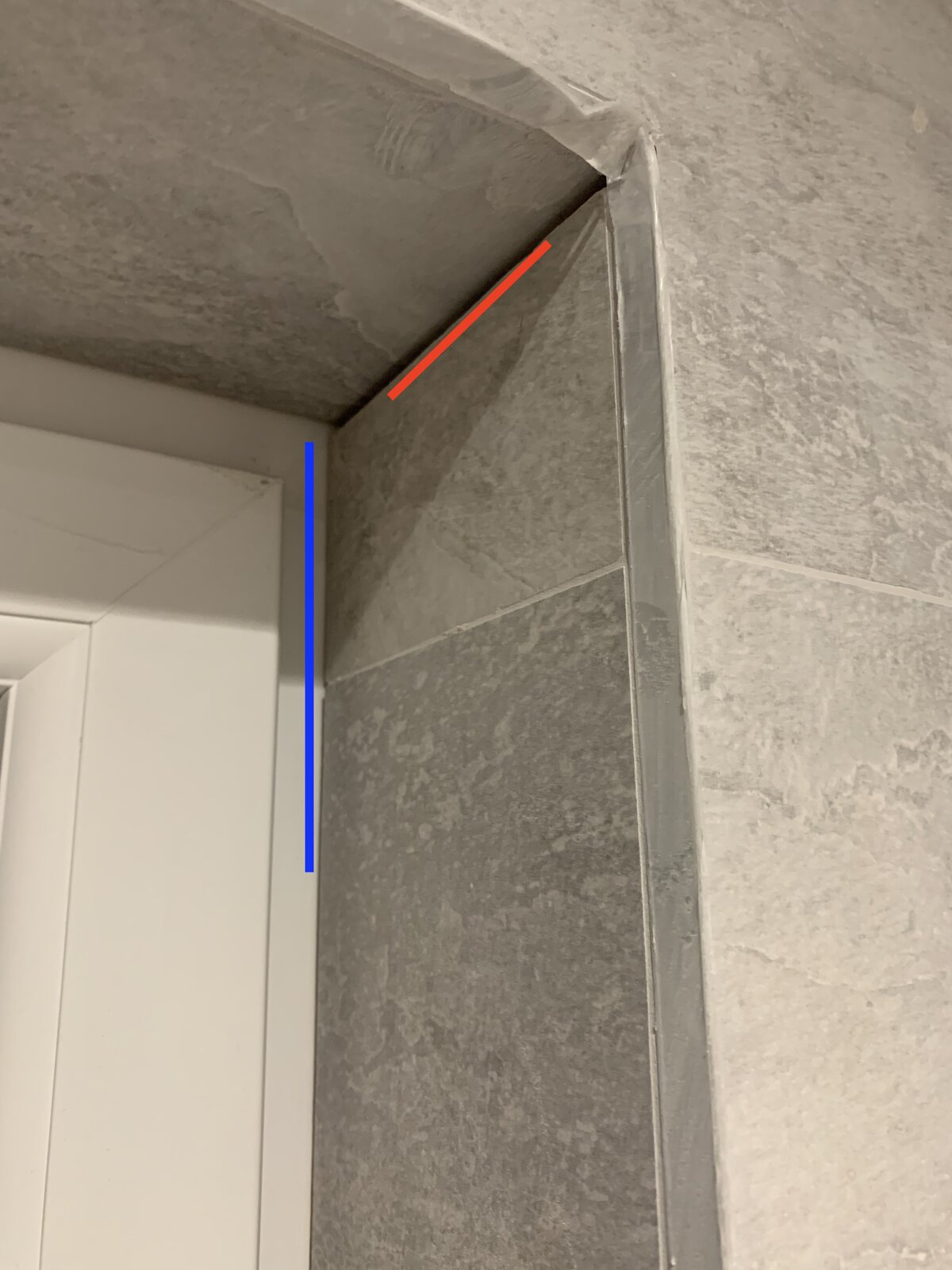 Photo D - Red Line (I would say grout?) Blue Line (Sealant?)