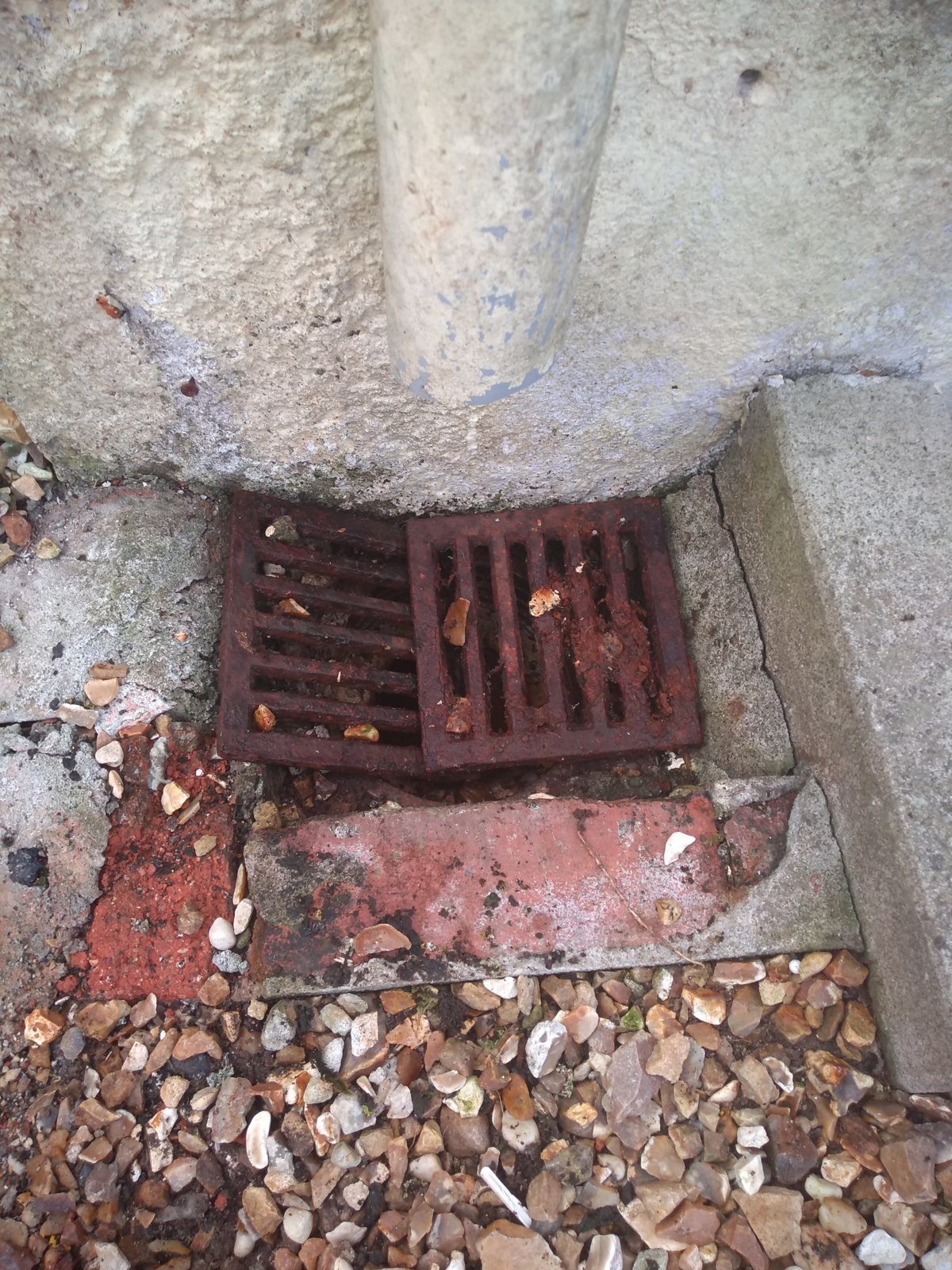 Hi guys, need some help on my roof drainage. I know I need to extend the pipe down and I'm thinking just to add the last little bit to 2 inches off the metal. I was also gonna add single layer brick wall to stop stones going down. Do I need to add something to the house wall?