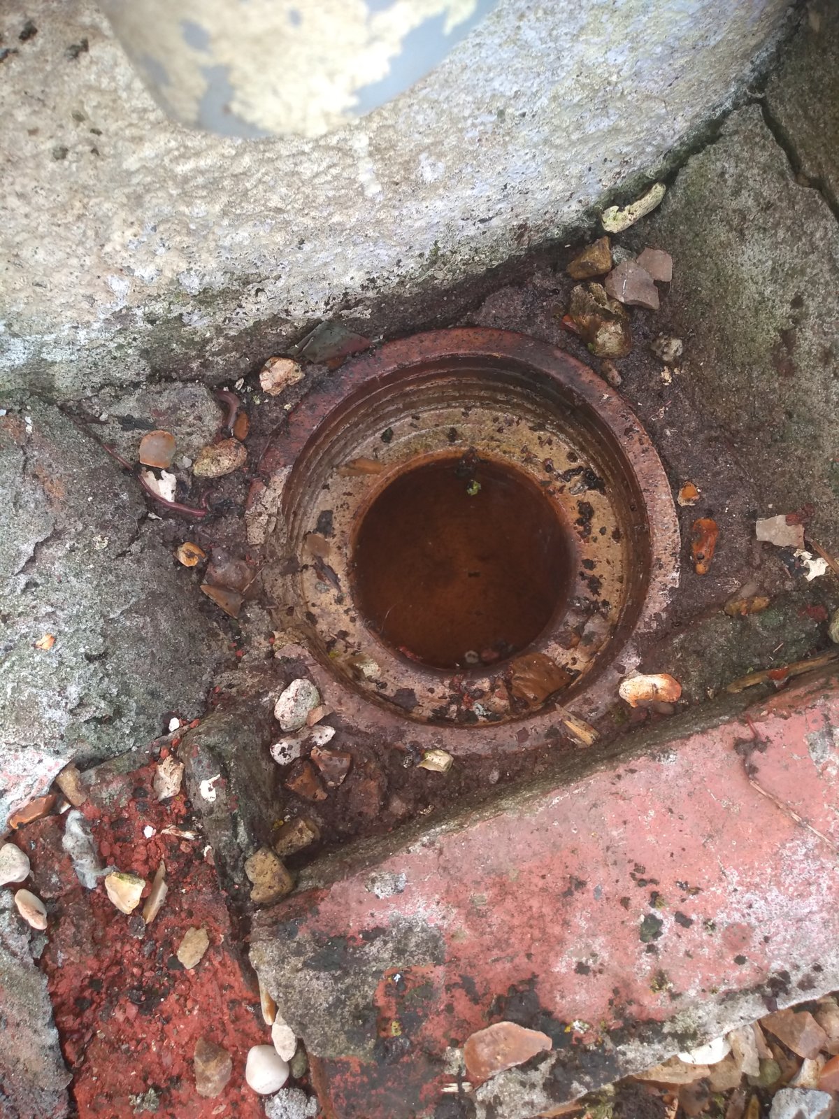 Extend it up from the ground and join to downpipe, no chance of rubbish entering.