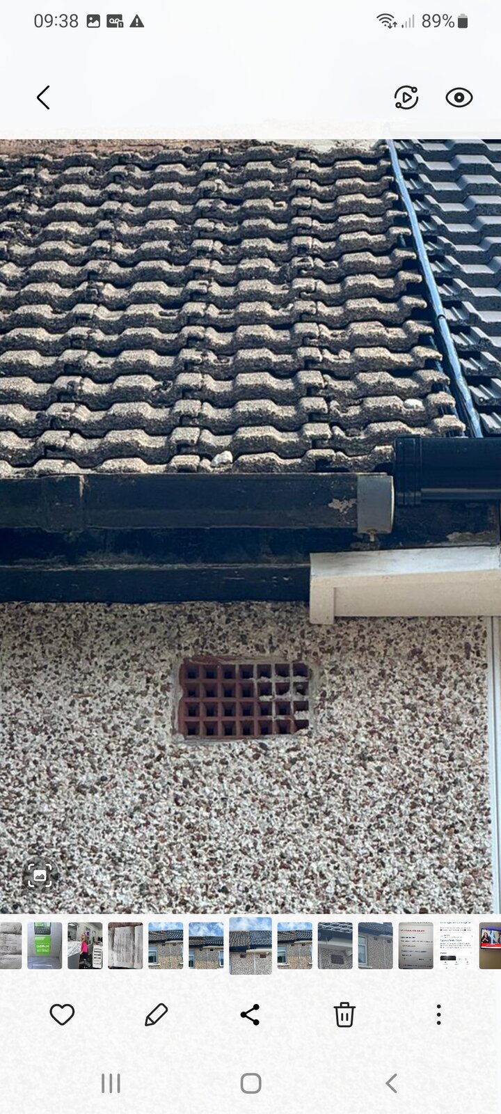 Well that all looks a bit rough. Presumably your house is on the left? Questions for the neighbour- why has their new gutter been extended over the boundary as well as the bargeboard cladding?
