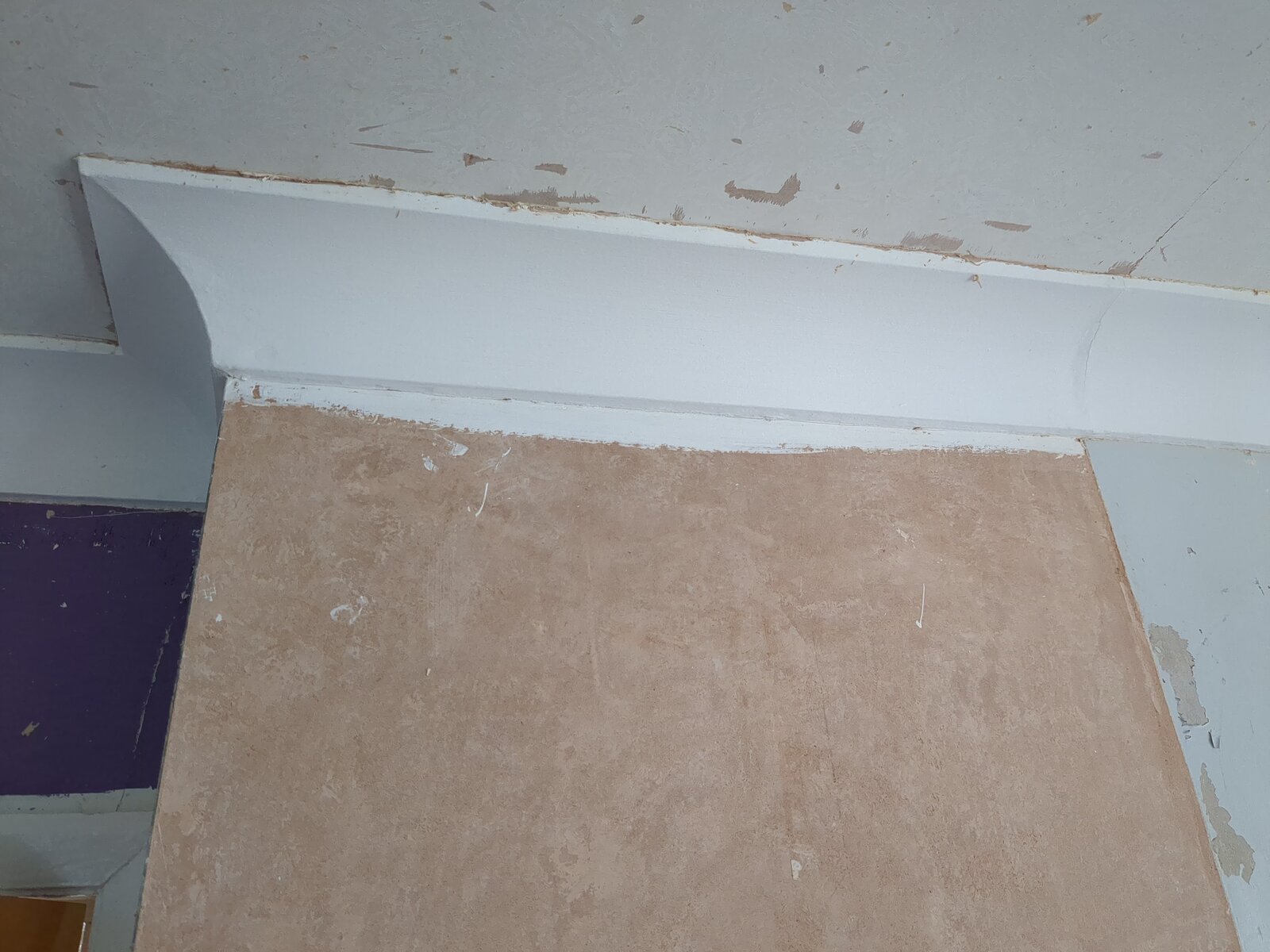 People think 127mm coving comes down wall 127mm. It don't. It's about 83mm down wall and 83mm out on to the ceiling.
