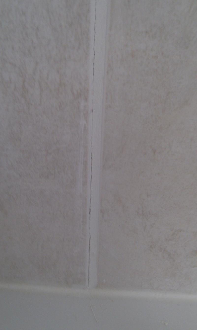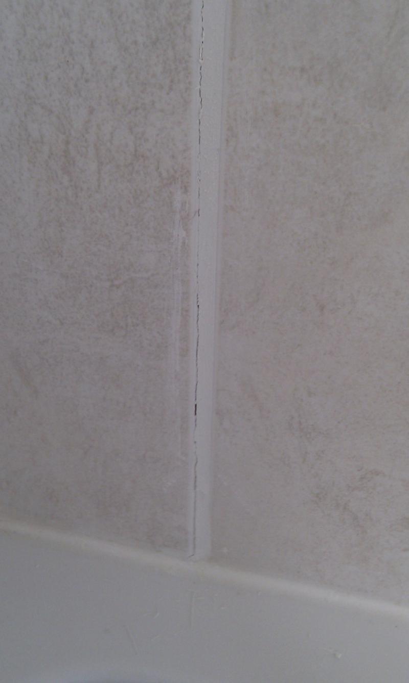 There is a tiny hairline crack in between two tiles on the grout on the side where the shower unit is installed. It is at the bottom of the shower near the shower tray. It was fixed once but it has come back. If I push the tile, it appears to be moving a little. There is plywood behind it.