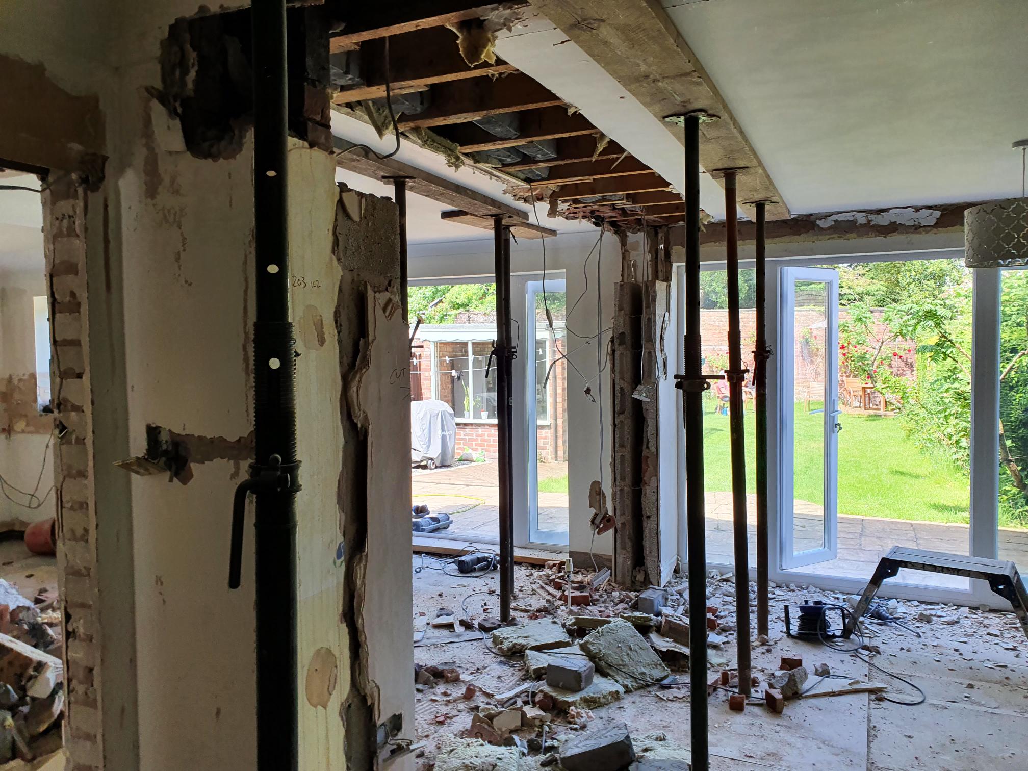 I've recently had some work done on my house to make an open plan kitchen/diner space. The house is a 1960s dormer bungalow that has a two storey extension completed at the back years ago. I've recently had an internal load bearing wall knocked through with a steel beam installed to support the upstairs rooms. We also had a wall taken down and stud wall installed to make a built in fridge- freezer/larder pull out unit. This wall was part of of the old external wall that is no longer supporting following the previous extension. We had structural engineer perform the calculations and hired a reputable local builder who was done work work others that I know.