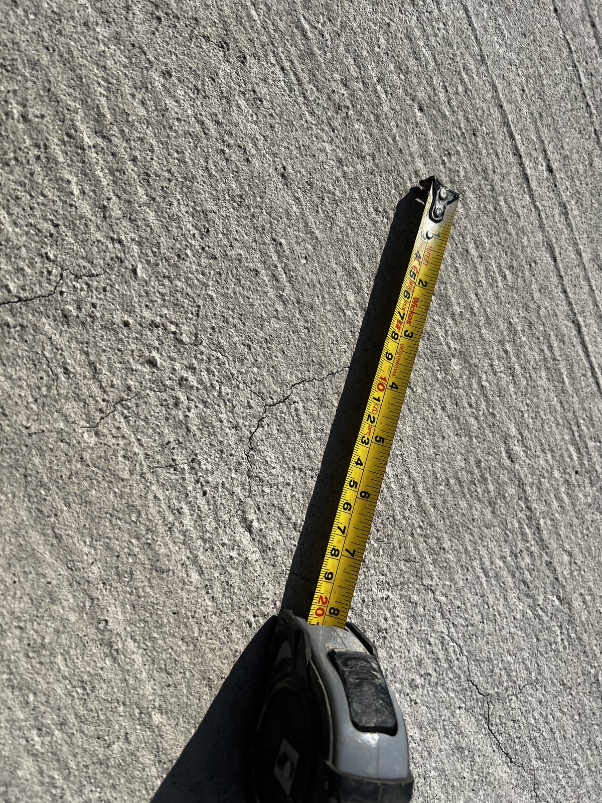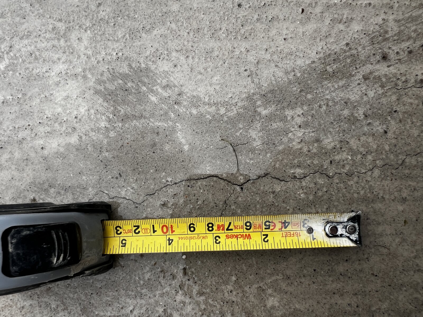 it is probably only a few mm deep - shrinkage crack top is drying out much quicker than the middle and bottom
