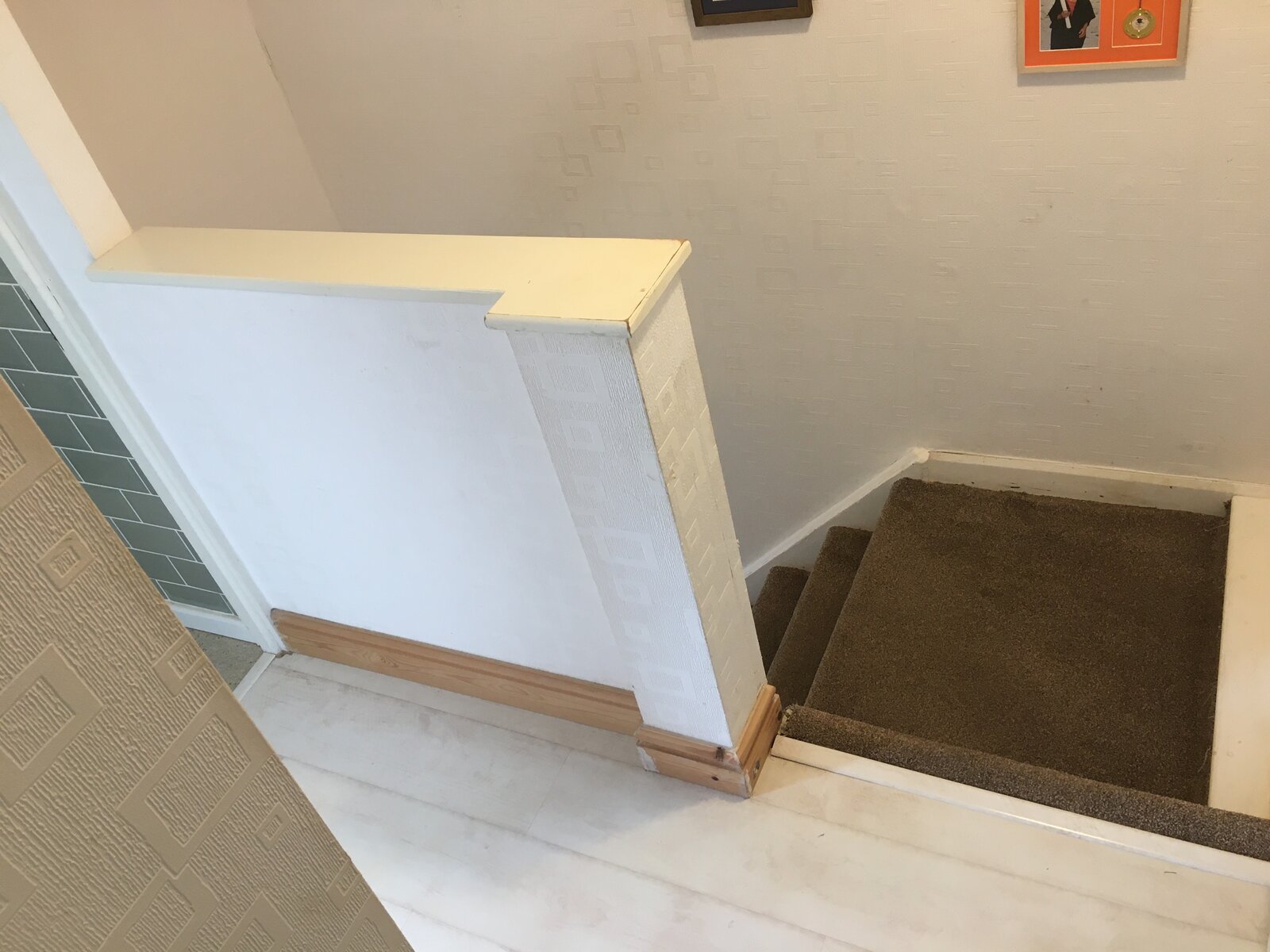 I have a half wall on my landing that I would like to knock down and replace with a landing rail. It use to be the wall/entrance to a bedroom before the bathroom was installed upstairs and a new door way added.