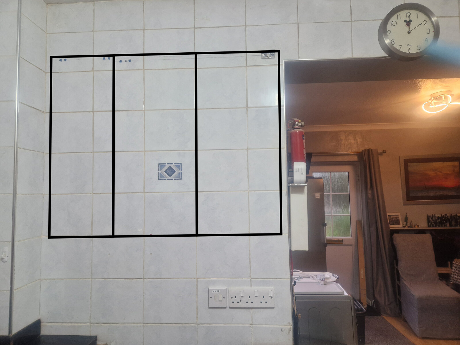 ok have took a picture hope it makes sense so one is of the wall, one is trying to show what the cupboard layout was before, and the last one is trying to show what we would like it to be, i have left one bracket on the wall at the moment but ideally the cupboard will be dropped down a bit as its too high on the wall for us vertically challenged people