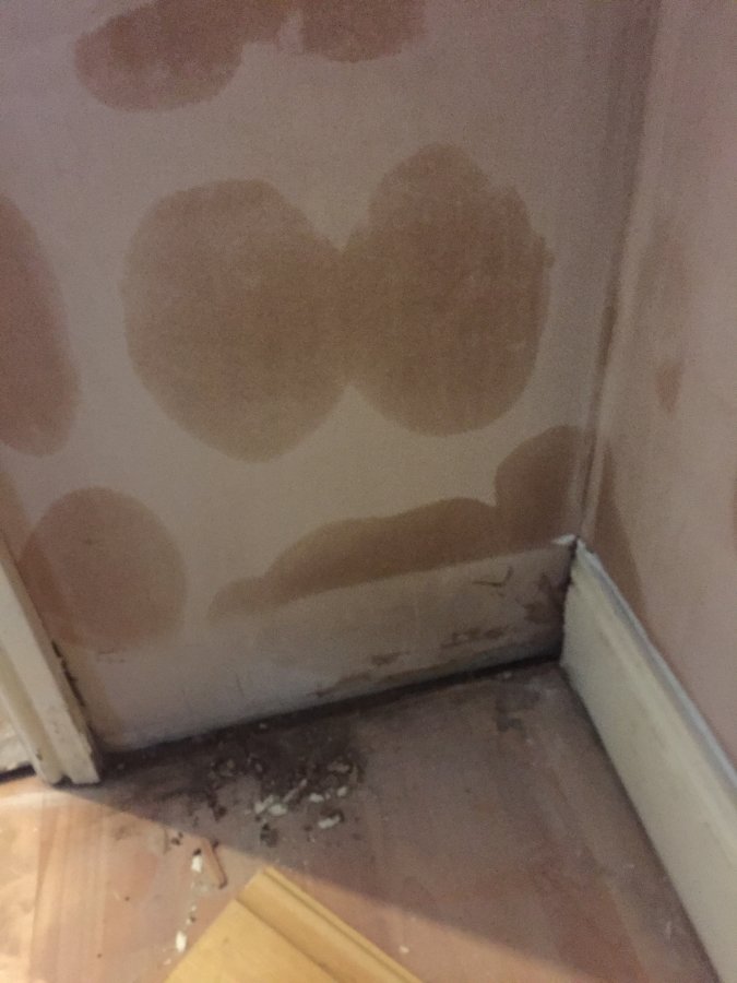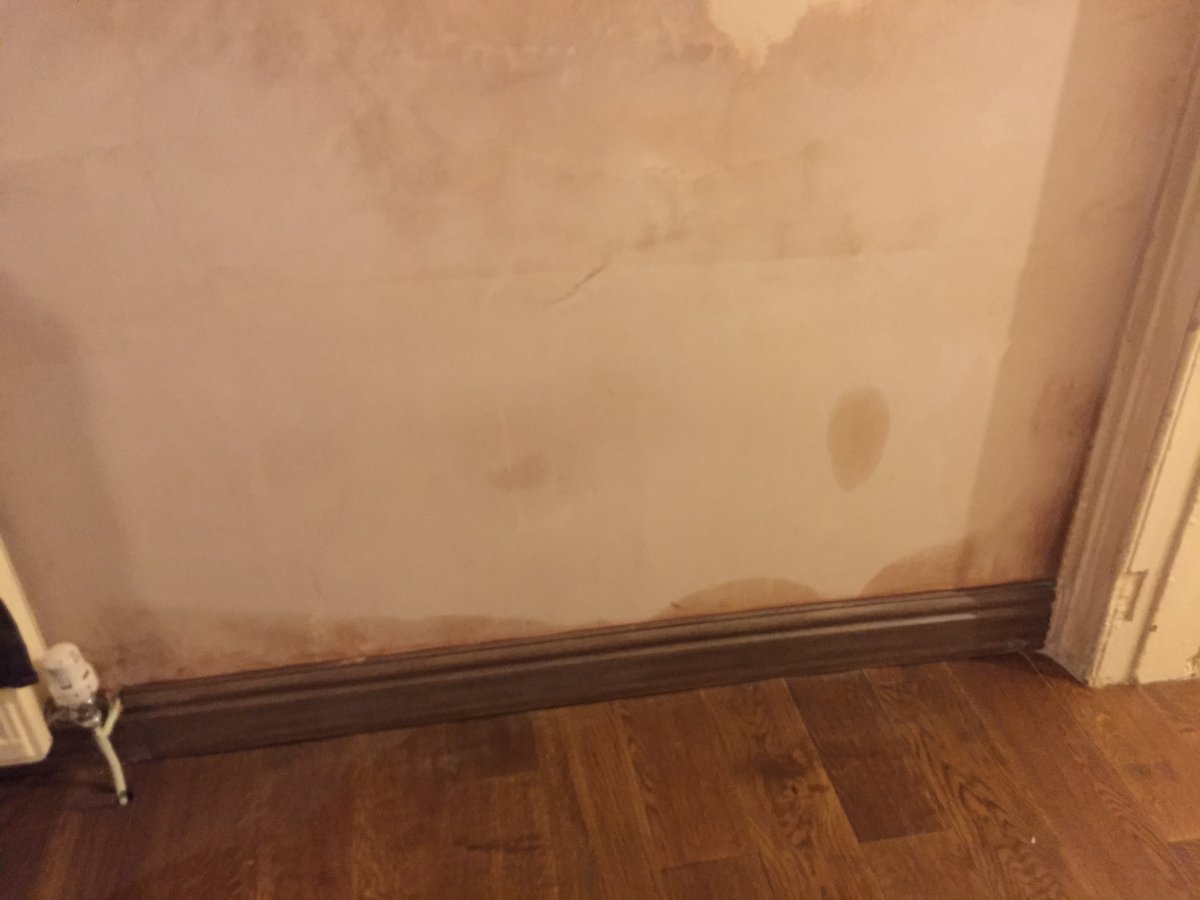 6) Notice in one pic, the damp spot ends where the skirting board is, I took it off for this photograph. (Condensation , not damp?)