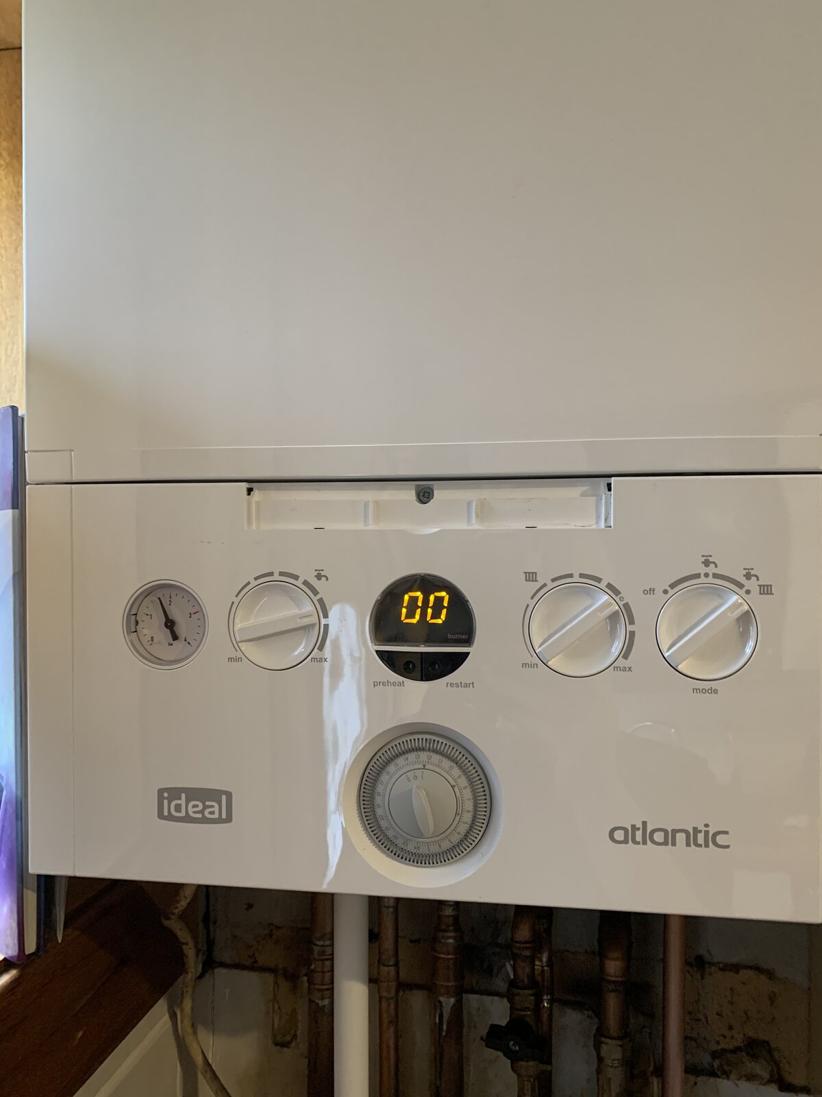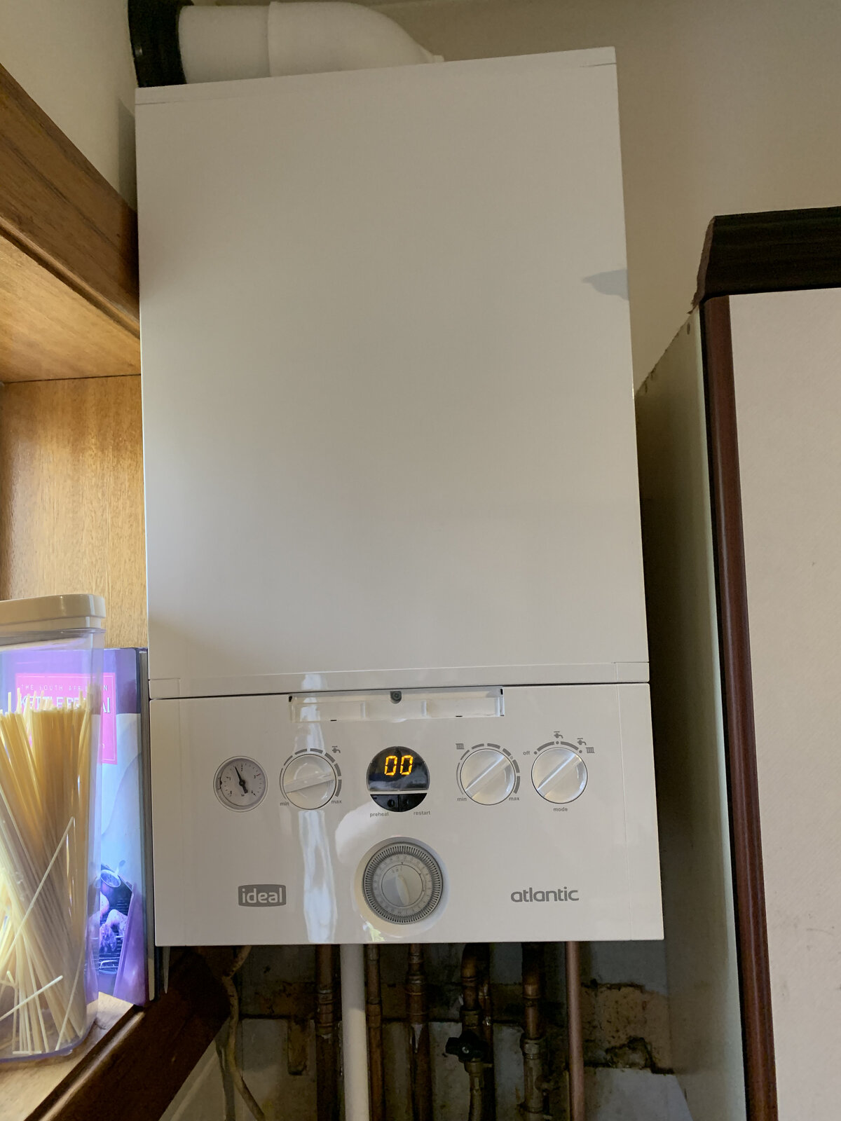Starts taking the old boiler out all going well. I’m just going out to the Van to get the new boiler which he did. When the Boiler was brought in all wrapped. I noticed on the side of the Box Ideal Atlantic 24 KW. ipointed out that wasn’t a to my mind a 30 KW boiler. The reply was all the boxes are marked with 24 but their really 30.