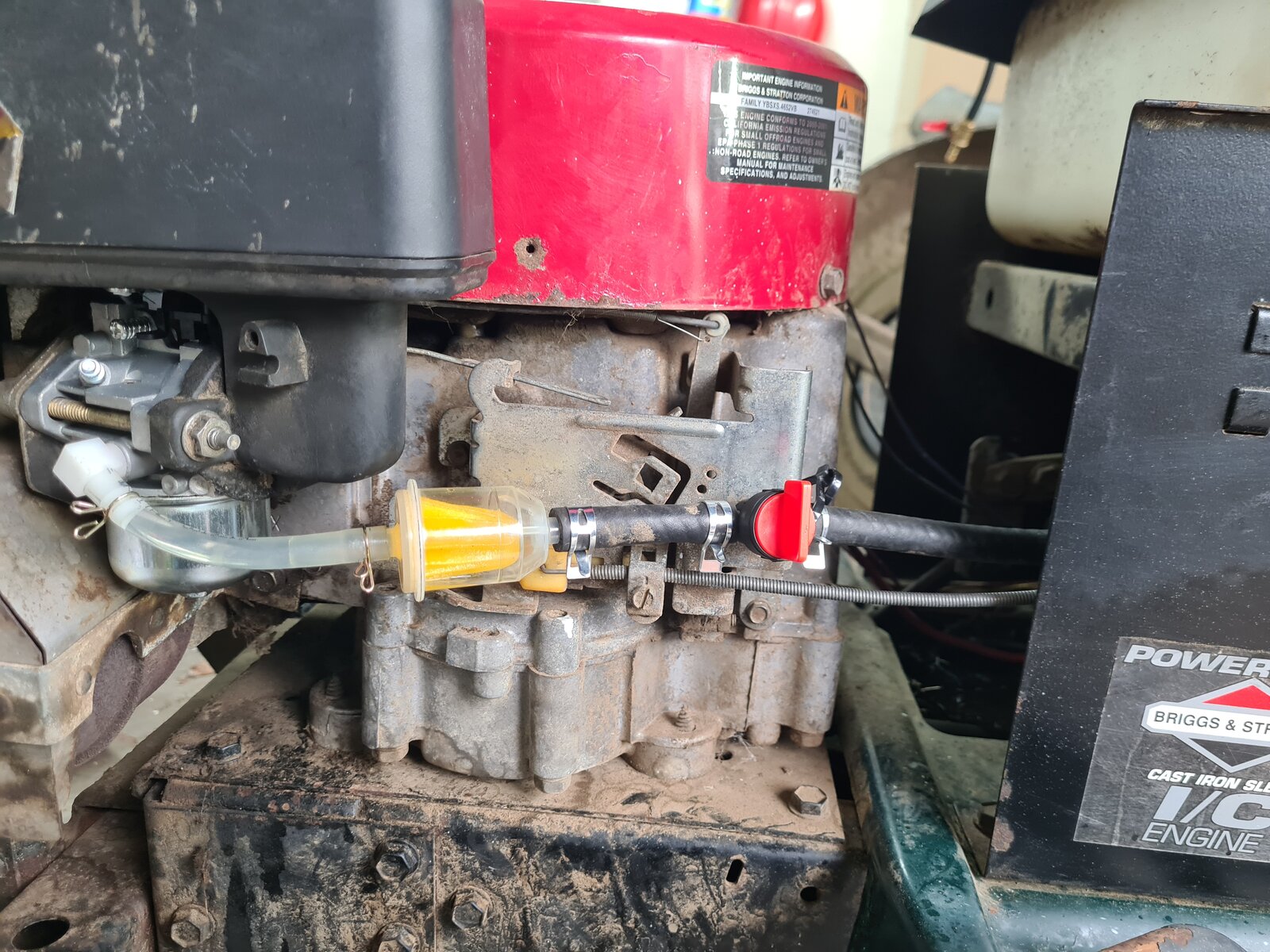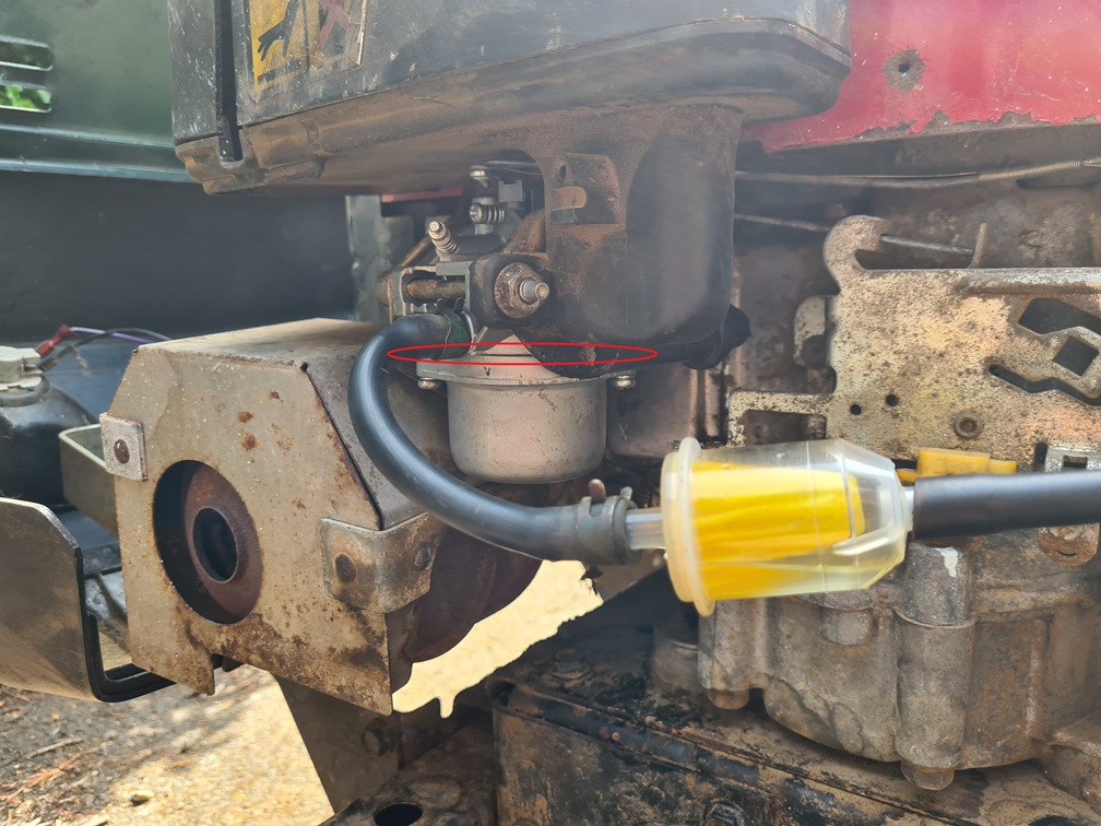 I noted that the fuel hose is rather long and the fuel has a large drop and then uphill climb to get back to the carb, so amended this in the pics to have a gentle downhill to the carb inlet -- I'm not sure if this is a factor due to previous running. Fresh fuel has been used.