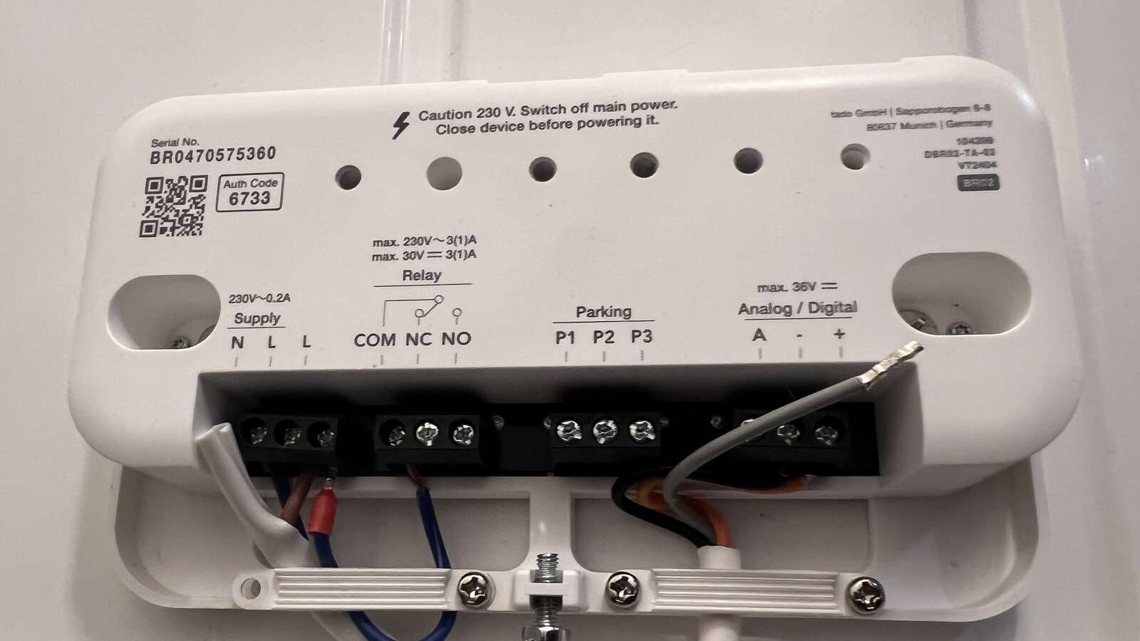 Why do you have a mains link between L and Com yet trying to use +/-? I’m not sure Tado supports ebus which you may have connected on the Heatline. Best just using low voltage or extra low voltage.