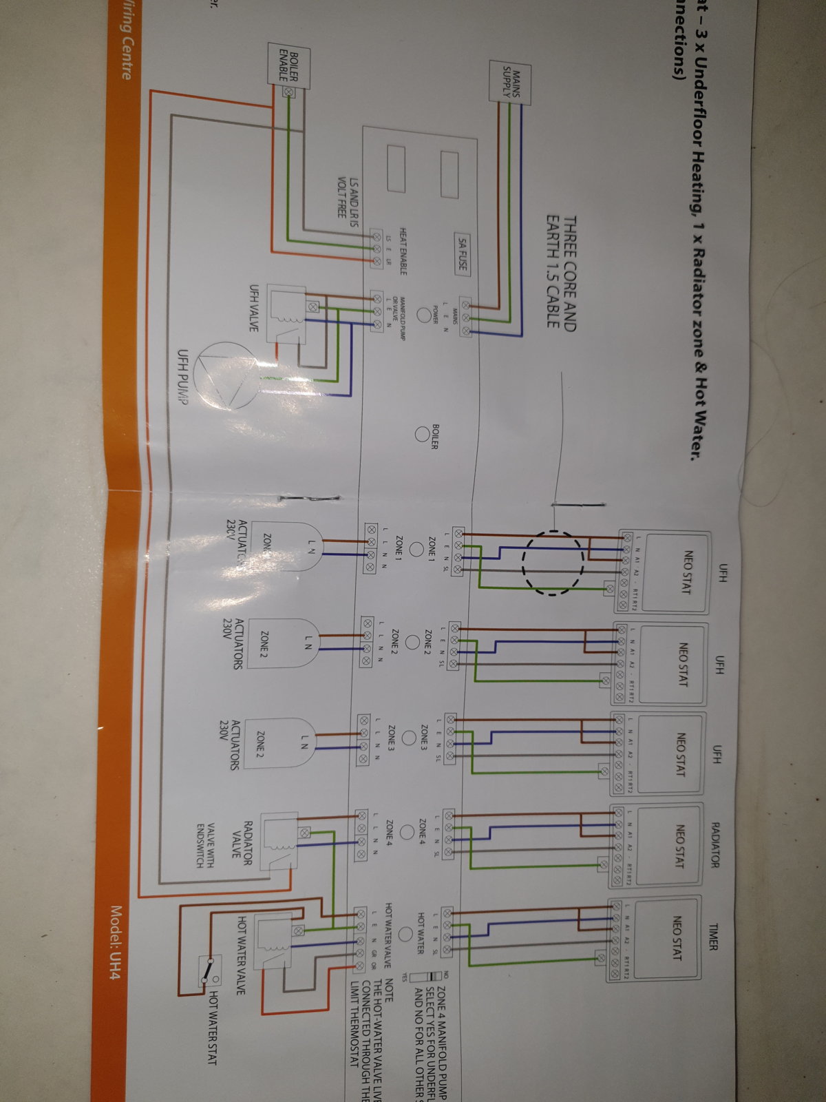 I'm installing a wiring center for UFH. I understand the wiring diagram but I only have a 2 port valve for the UFH manifold. It says to use zone4 for rads and wire L N to a vavle which can then wire to Ls and Lr on the boiler enable. Only problem is there is no valve, can i use L N to call for heat from the boiler somehow without a valve as it seems unnecessary on a combi system.