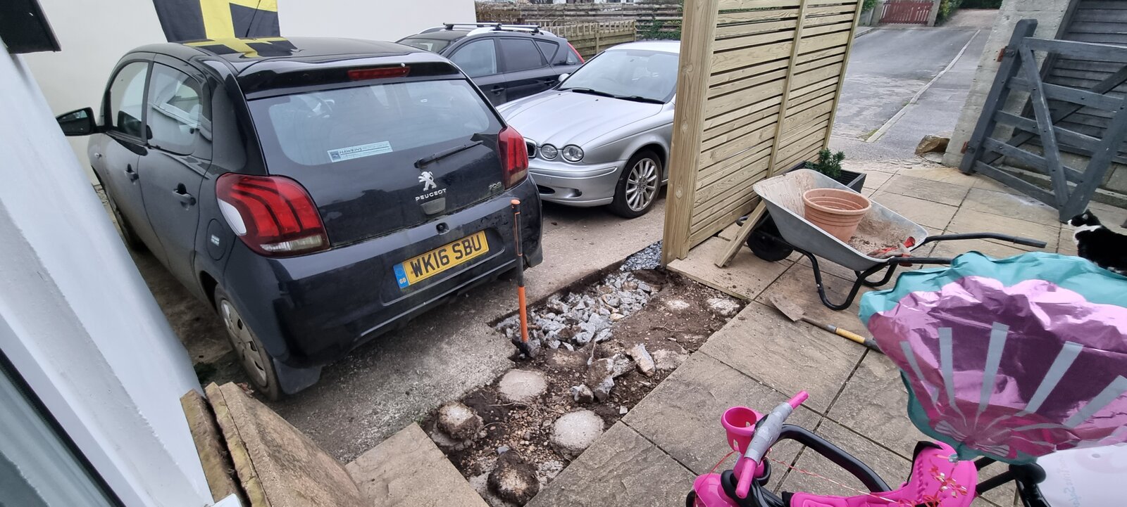 When we moved in there was a fence for the full length, which basically fell apart in the first few months of moving in, but was annoying as had to walk around to access cars etc. and with me wanting a project car and occasional extra parking i want access through.