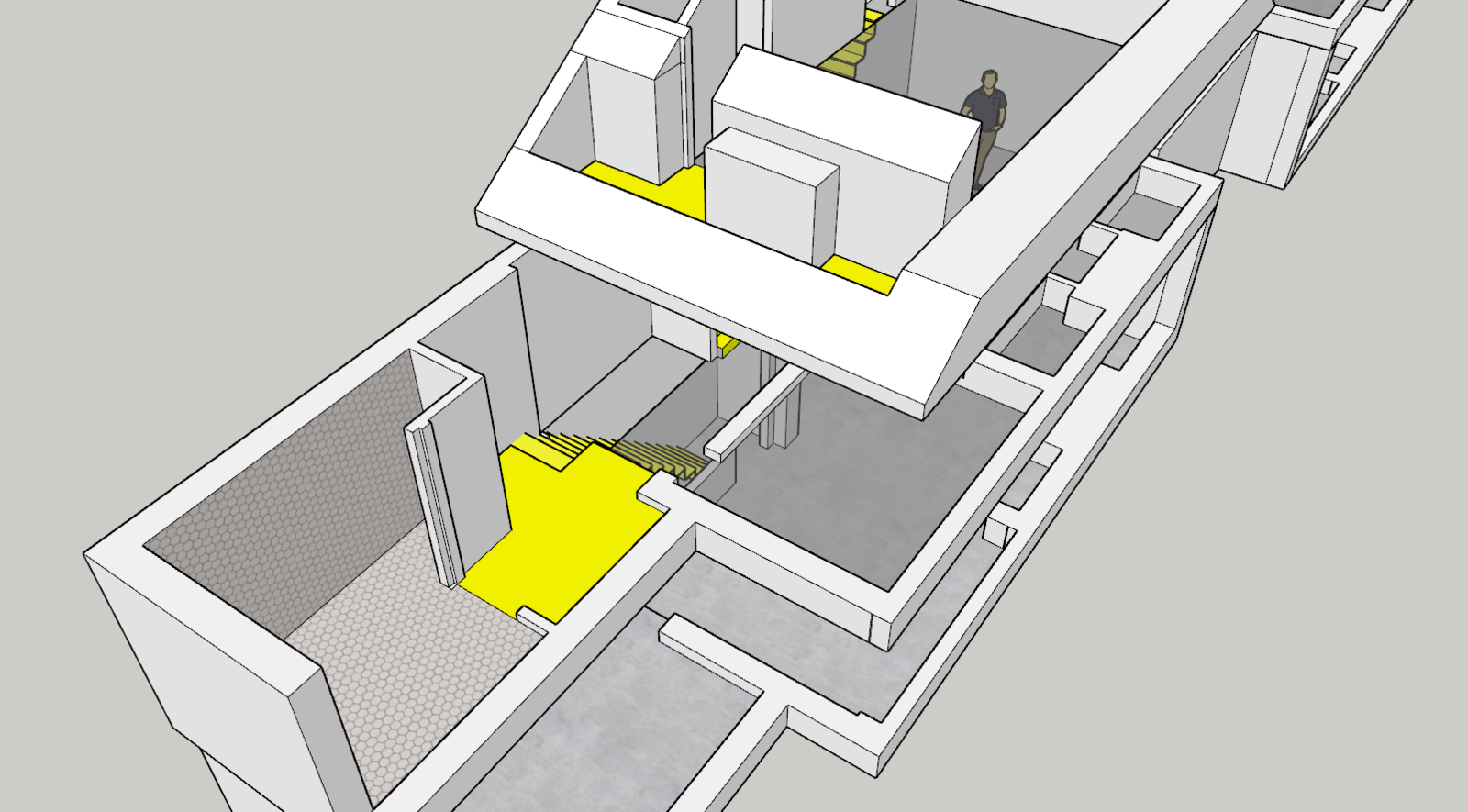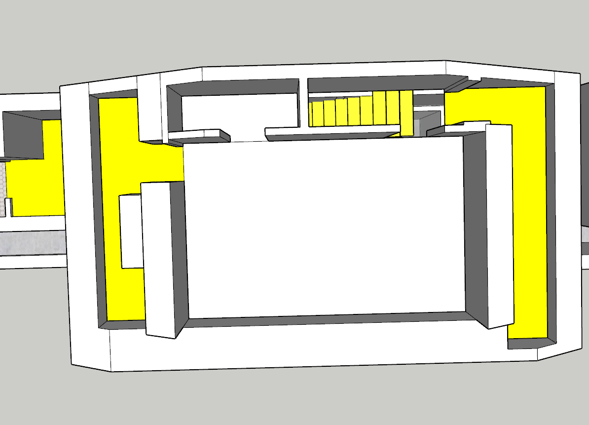 On the attached, yellow is the current configuration that I want to rework, red it the ideal I'm aiming for.