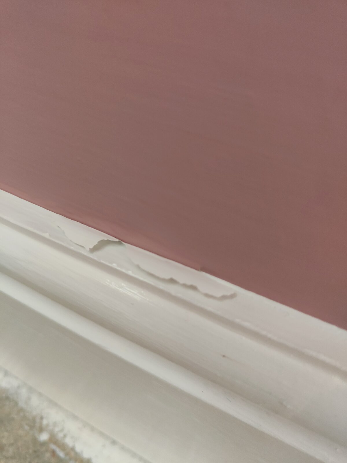 Panelled my daughter's room then decorators caulked the gaps aswell as wood filled. I primed the Pine paneling and painted skirting satin brilliant white, then walls with a light shade pink Acrylic based paint. Then taped up panelling area and painted dark pink Acrylic paint again, gave it two coats then 20 mins after last coat pulled it and not to my delight, see pics... Looking for help as carpet needs fitted in 2 days, I could hand paint it tonight no issues but it's the tape that's definitely pulled paint off but would like to use it again or a diff sort...was green frog tape (which worked brilliantly against the white satin and lighter pink walls to skirting...