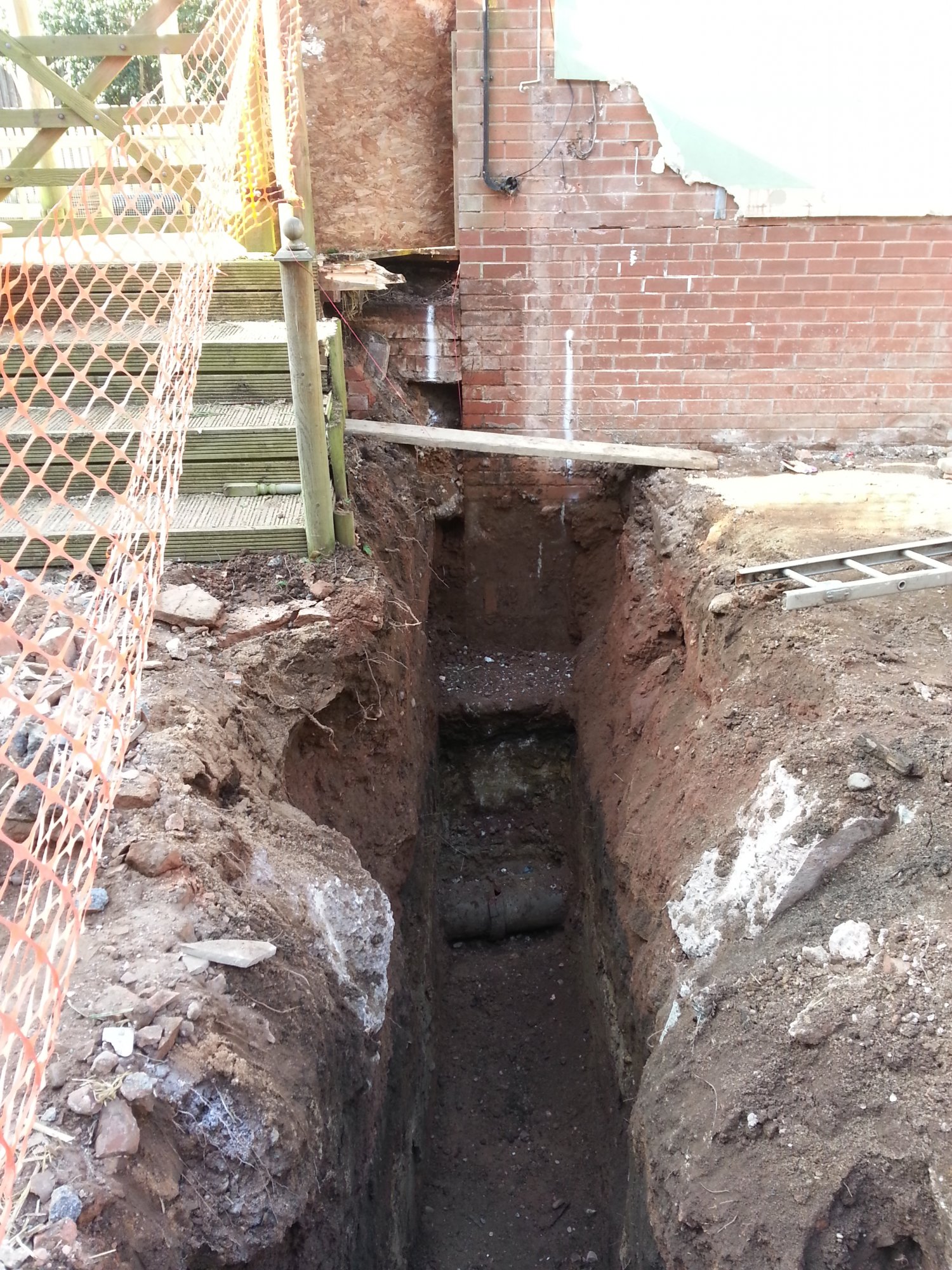 I'm in a bit of a pickle... we had our wooden conservatory replaced when we bought our house 5 years ago. It was built on top of a foundation wall which is built against the exterior wall of the house.
